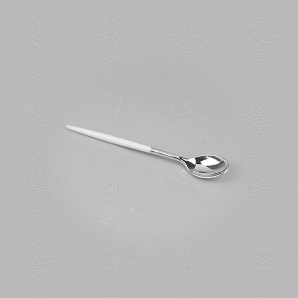 SILVER PLASTIC SPOON - WITH WHITE HANDLE