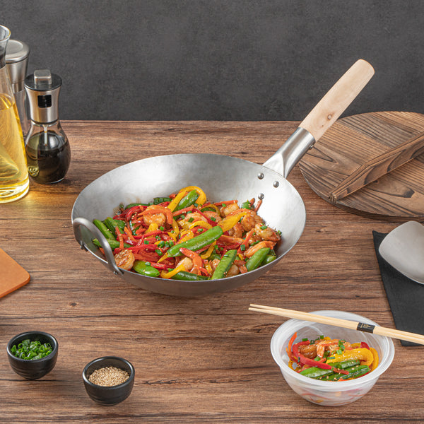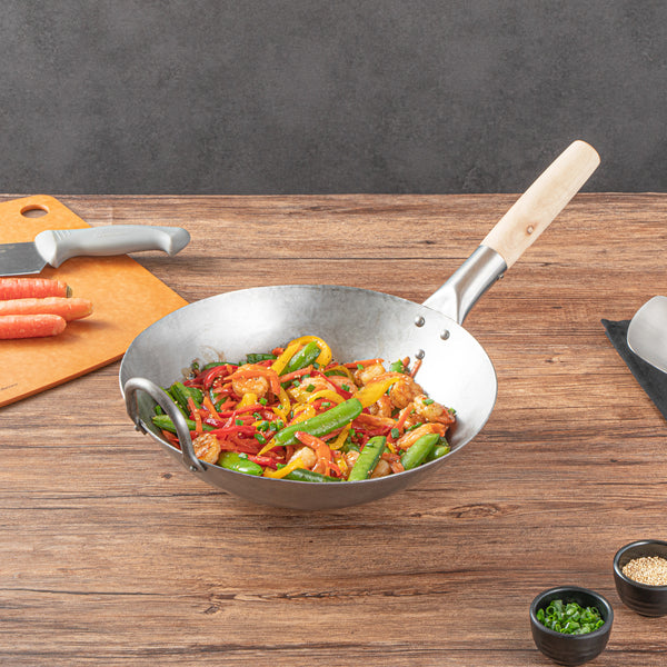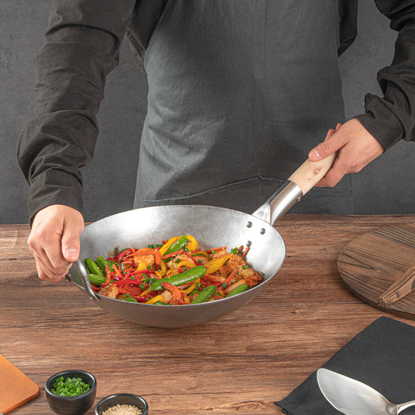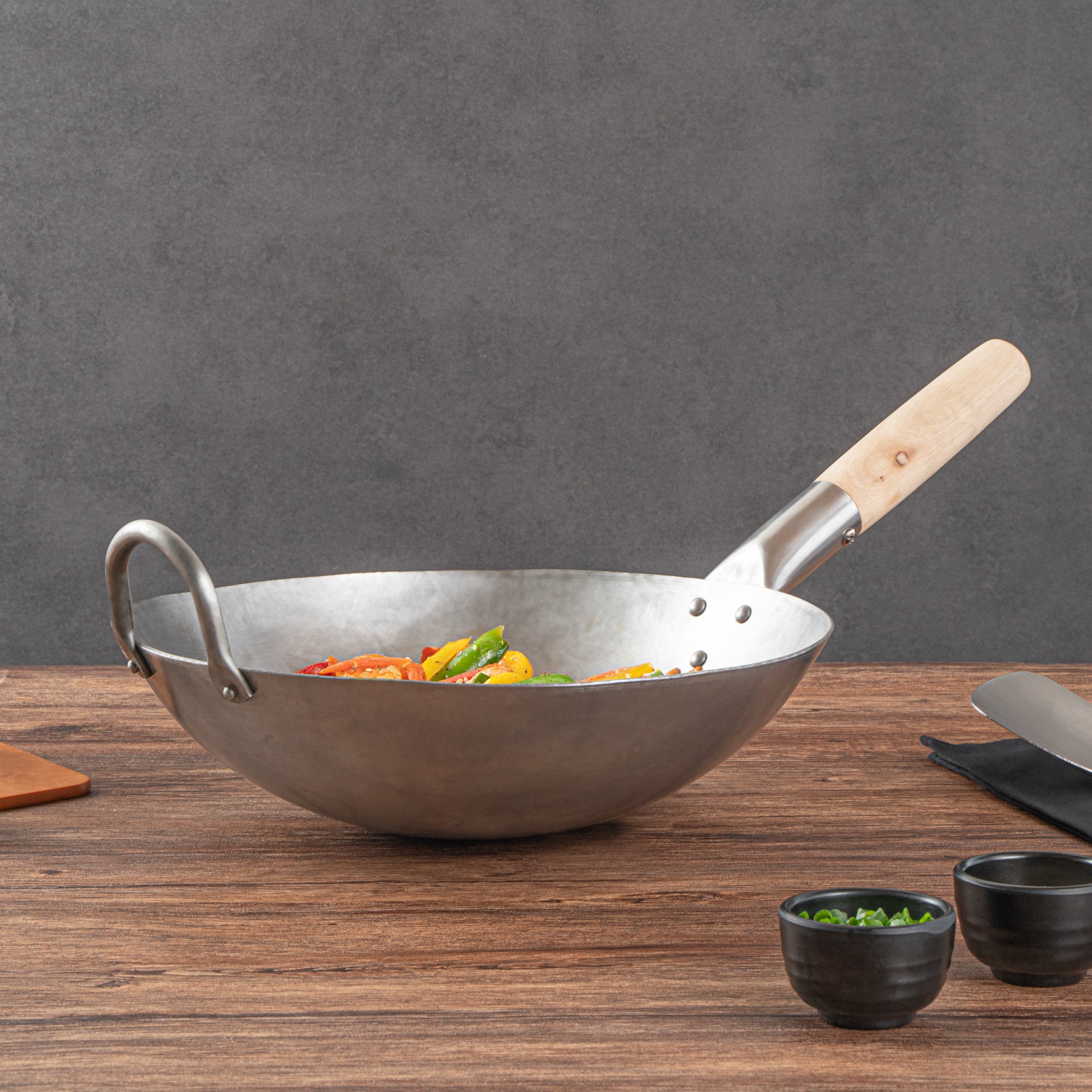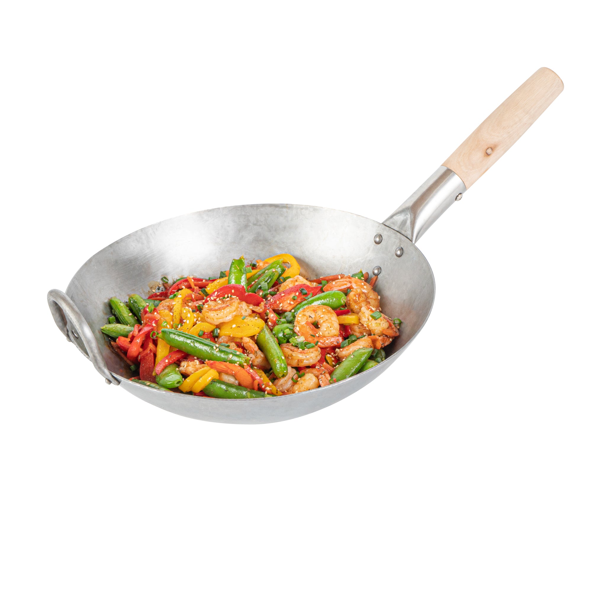 Made from durable carbon steel, these Chinese woks ensure even heat distribution and can withstand high heat. Perfectly cook authentic meals!