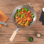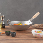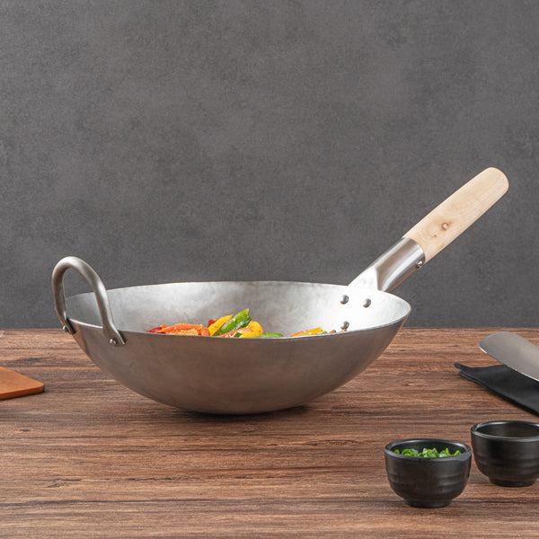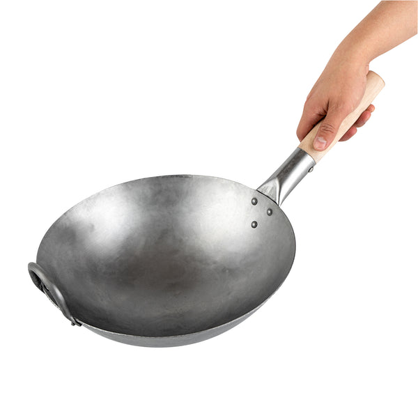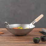 Featuring an additional helper handle, these authentic woks ensure secure handling and easy lifting. This makes them convenient for both cooking and storage, providing added versatility and ease of use in the kitchen.