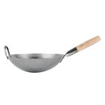 Equipped with a welded handle featuring a wooden grip, these Asian woks provide a comfortable and firm hold. The handle protects hands from heat and enables easy handling and maneuvering during cooking, ensuring a pleasant cooking experience.