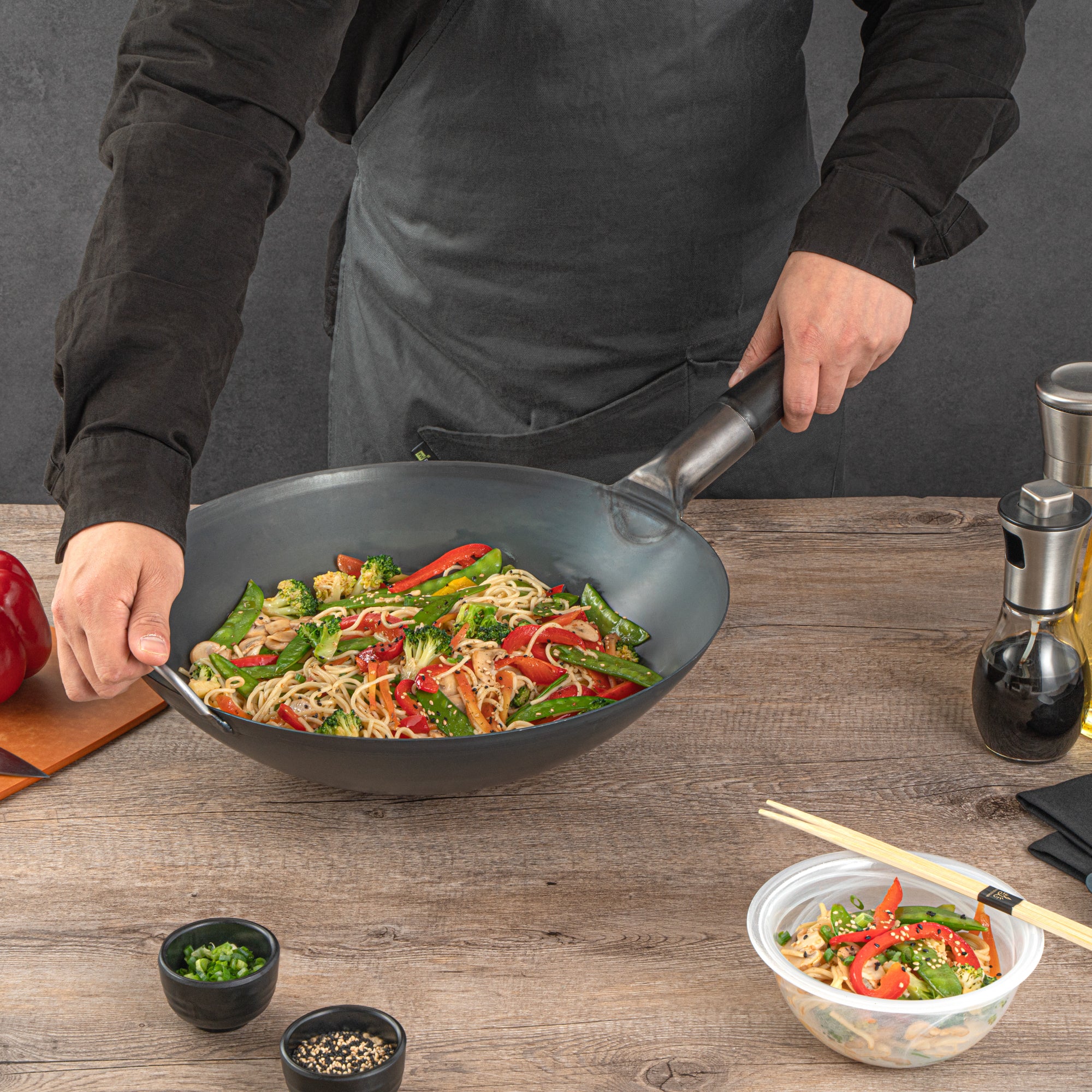Made from durable carbon steel, these Chinese woks ensure even heat distribution and can withstand high heat. Perfectly cook authentic meals!