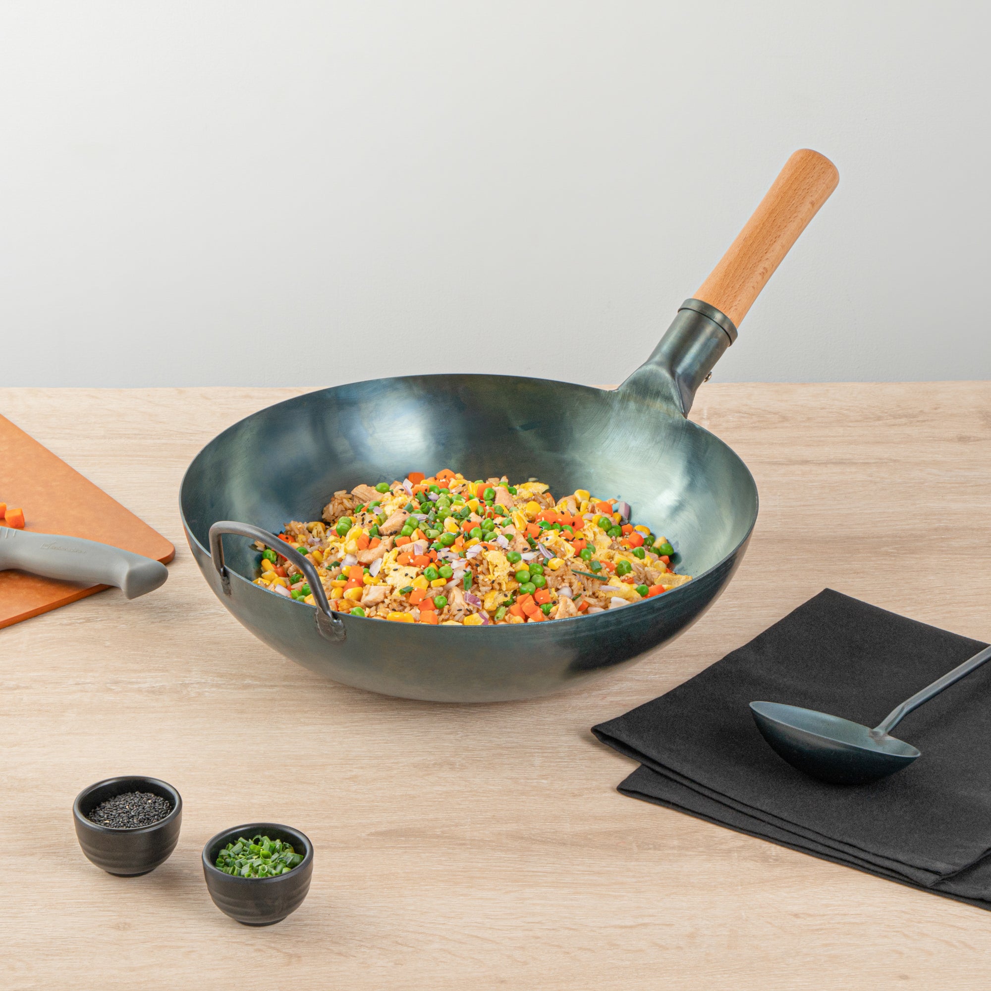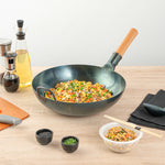 Made from durable carbon steel, these Chinese woks ensure even heat distribution and can withstand high heat. Perfectly cook authentic meals!