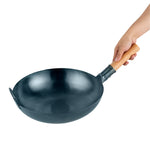 Featuring an additional helper handle, these authentic woks ensure secure handling and easy lifting. This makes them convenient for both cooking and storage, providing added versatility and ease of use in the kitchen.