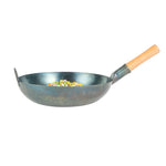 14" BLUE CARBON STEEL FLAT BOTTOM WOK / STIR FRY PAN - PRE-SEASONED