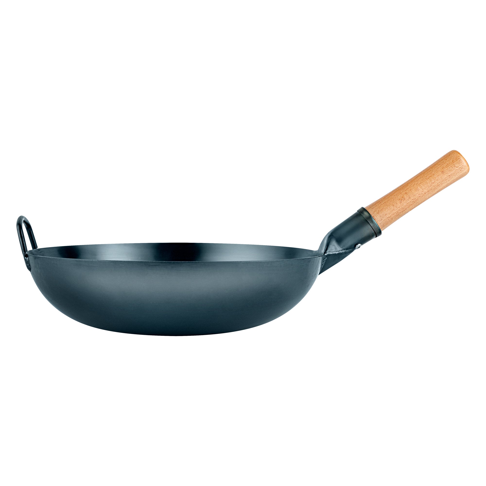 - Heavy-duty blue carbon steel allows uniform heat distribution