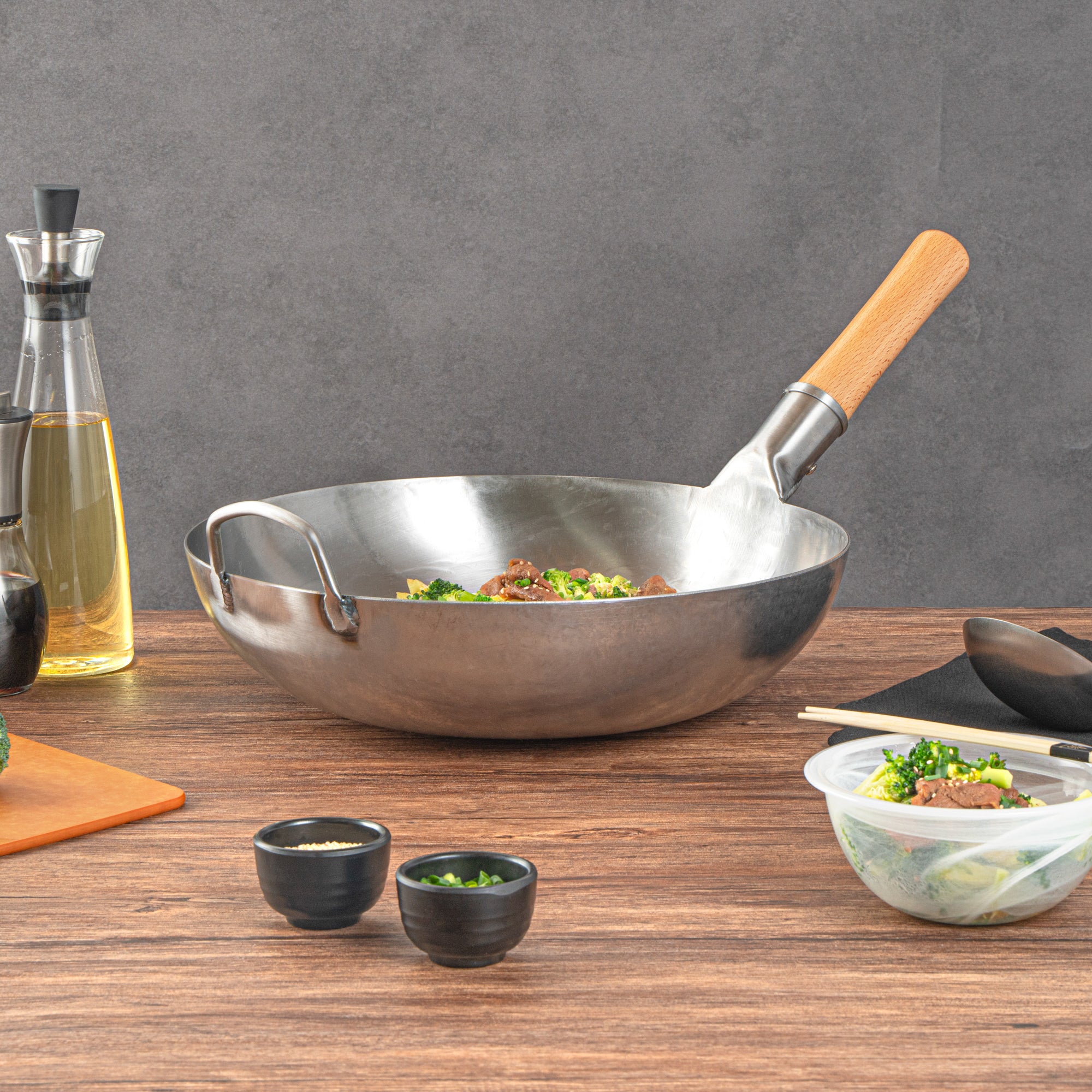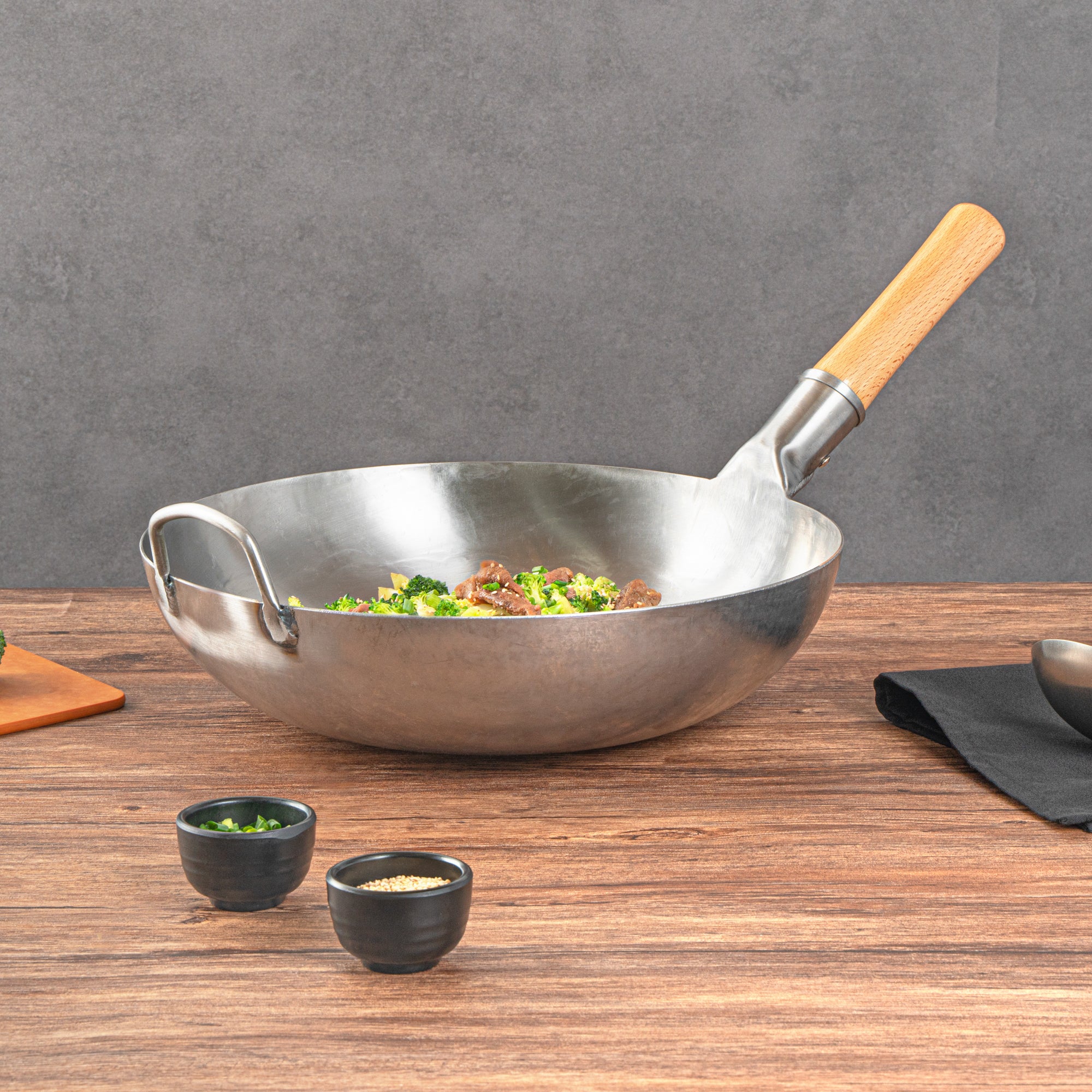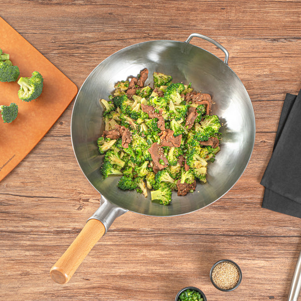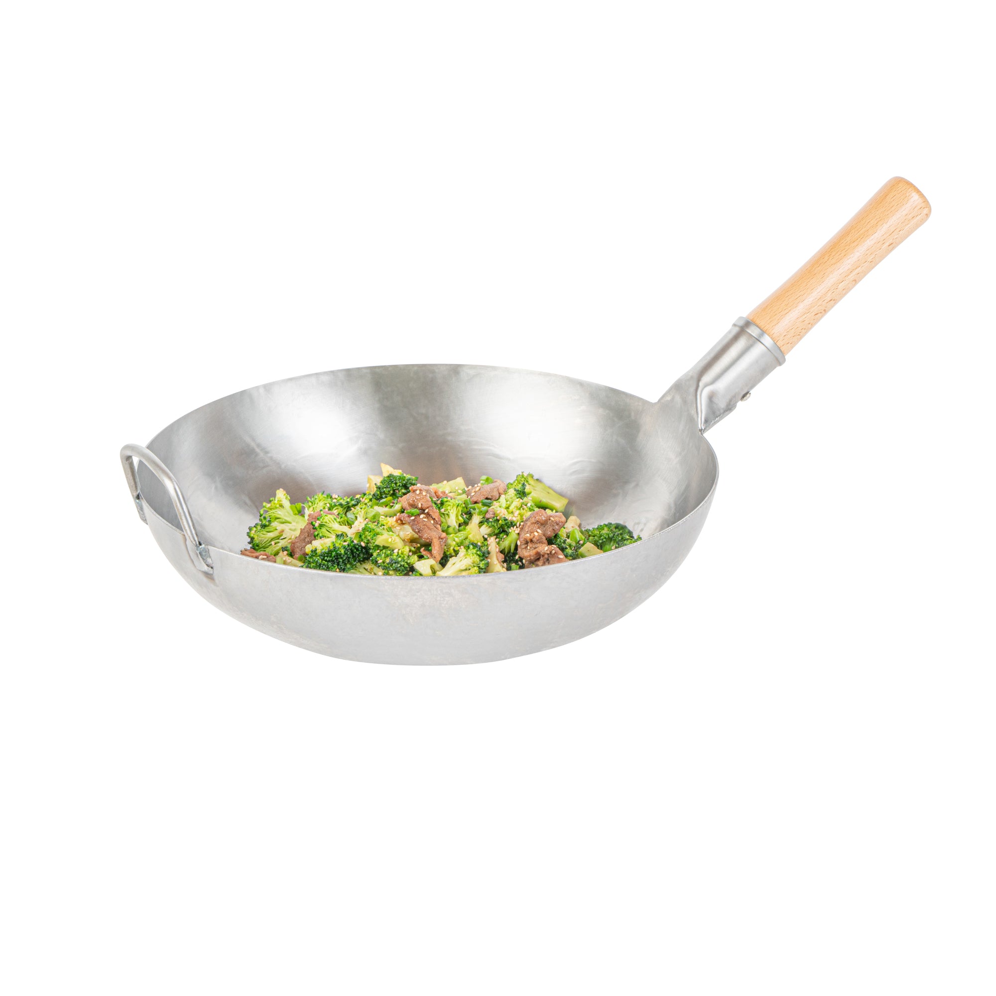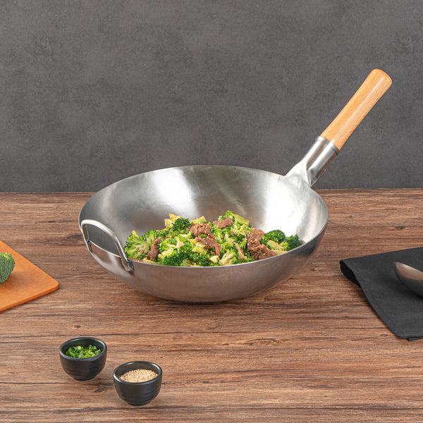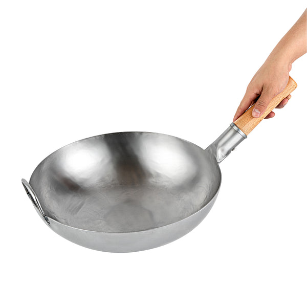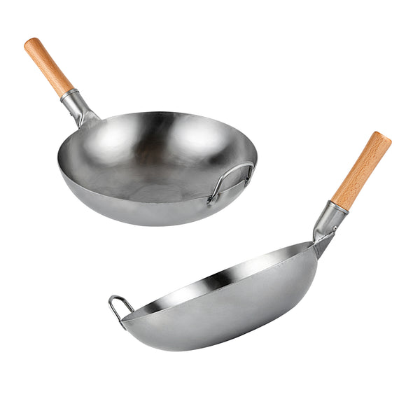 Featuring an additional helper handle, these authentic woks ensure secure handling and easy lifting. This makes them convenient for both cooking and storage, providing added versatility and ease of use in the kitchen.
