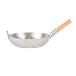 Equipped with a welded handle featuring a wooden grip, these Asian woks provide a comfortable and firm hold. The handle protects hands from heat and enables easy handling and maneuvering during cooking, ensuring a pleasant cooking experience.