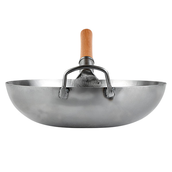 14" CARBON STEEL FLAT BOTTOM WOK / STIR FRY PAN - HAND HAMMERED