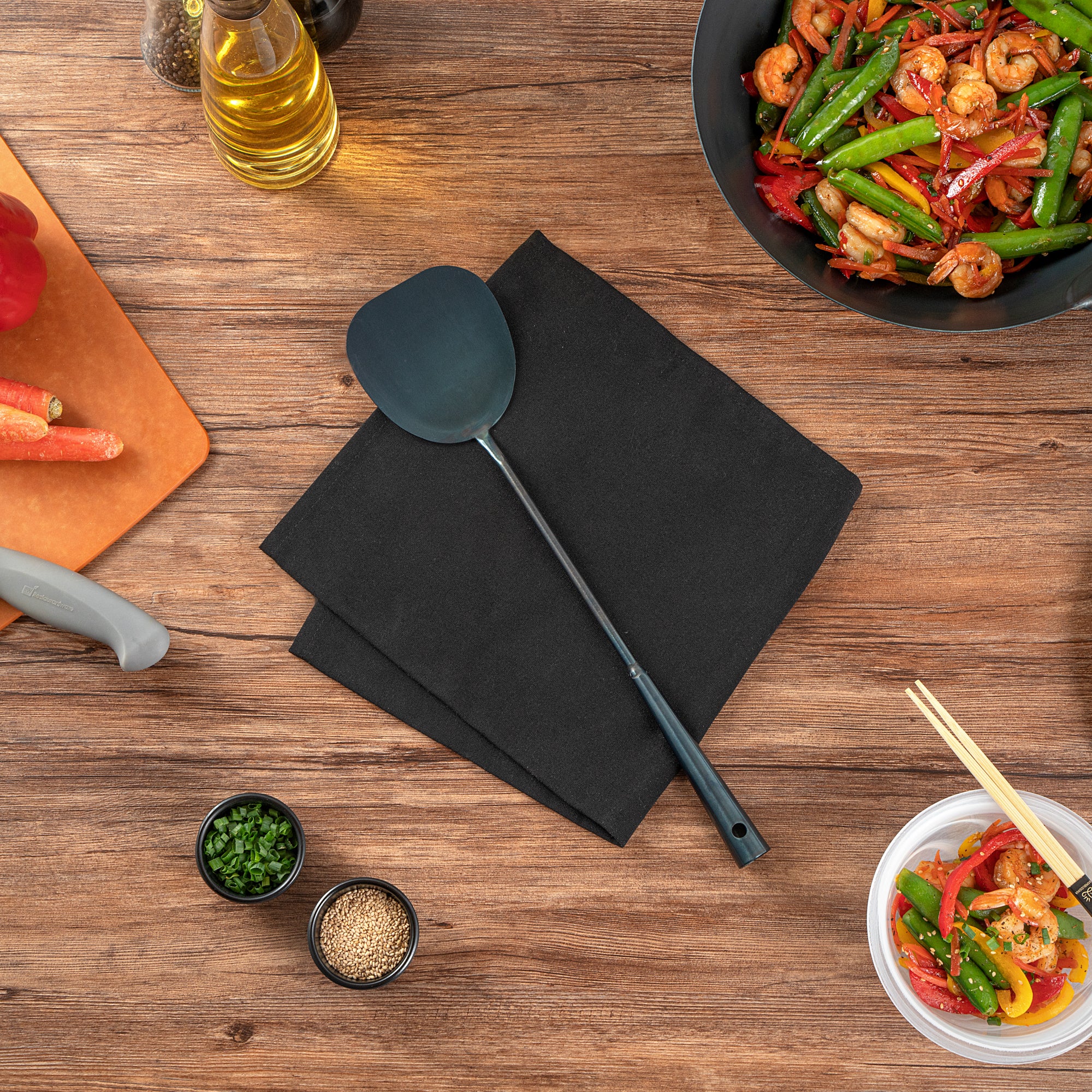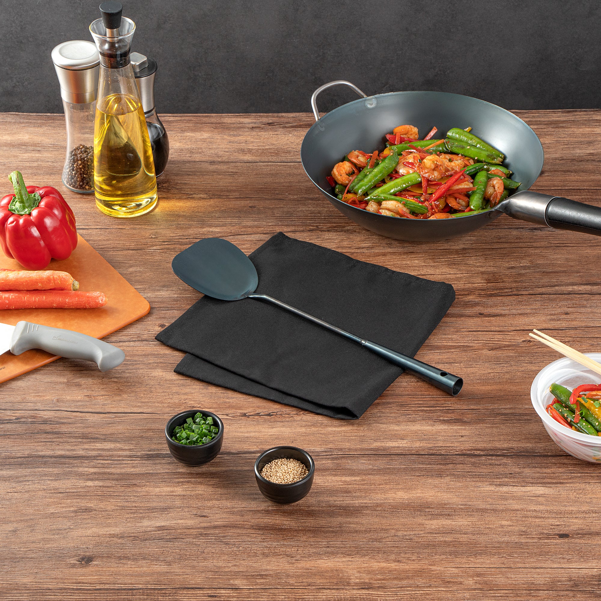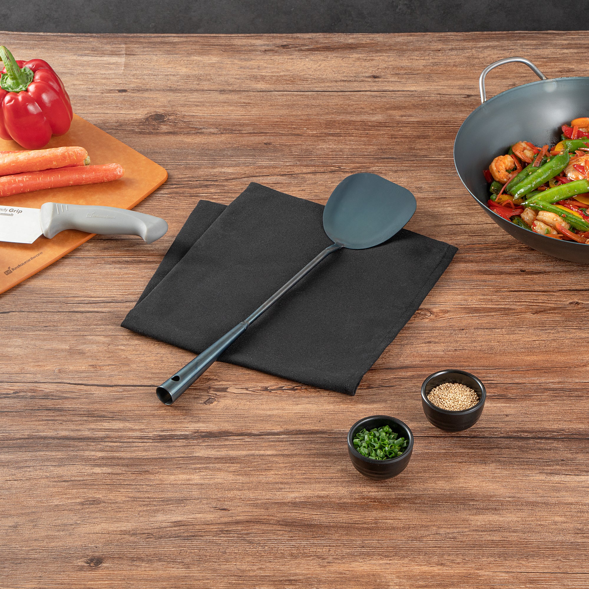 These wok spatulas come in a choice of stainless steel or pre-seasoned carbon steel, offering strength and versatility for all your cooking needs. Perfect for both home and commercial kitchens!