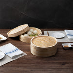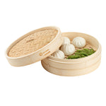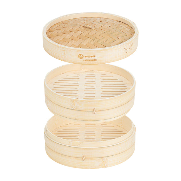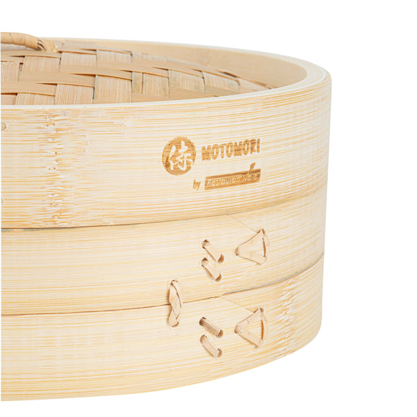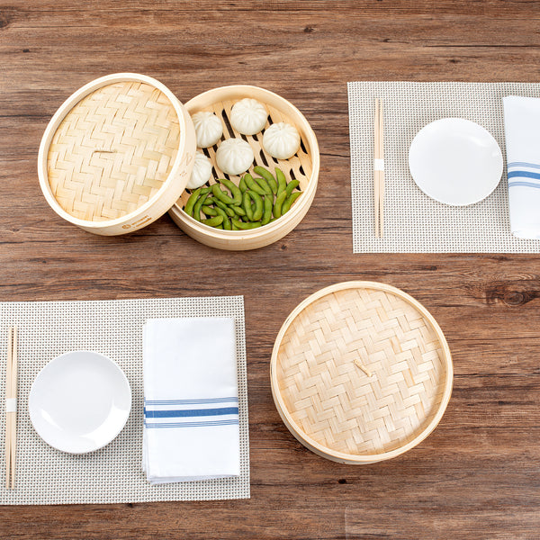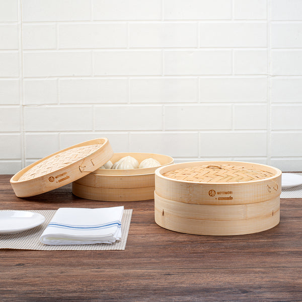 Steam vegetables with our Motomori Round Natural Bamboo Steamers. Each bamboo steamer set comes with a lid and steamer, ensuring a seamless and efficient cooking experience. Designed with attached handles, these bamboo steamers ensure easy handling, simplifying the cooking process and promoting convenience in the kitchen. Crafted from bamboo, these dumpling steamers offer a biodegradable and commercially compostable option designed for multiple uses. For optimal steaming results, rinse and soak these bao bun steamers for approximately 30 minutes before use, ensuring even steam distribution during cooking. These steamer baskets should be set 2 inches above the water level in a wok and can be lined with parchment paper to prevent flavors from steeping into the bamboo. To maintain the impeccable condition of these Chinese steamers, hand wash them in warm water without soap or detergents and allow them to dry thoroughly before storing. These wooden steamers can be stored in a well-ventilated area to keep them fresh and ready for your next cooking adventure. Measuring 10 inches in diameter by 4 inches in height, these bamboo dumpling steamers provide ample space for preparing a variety of Asian dishes. Sold in a 10 count box. These items will only degrade outside of the traditional solid waste stream.