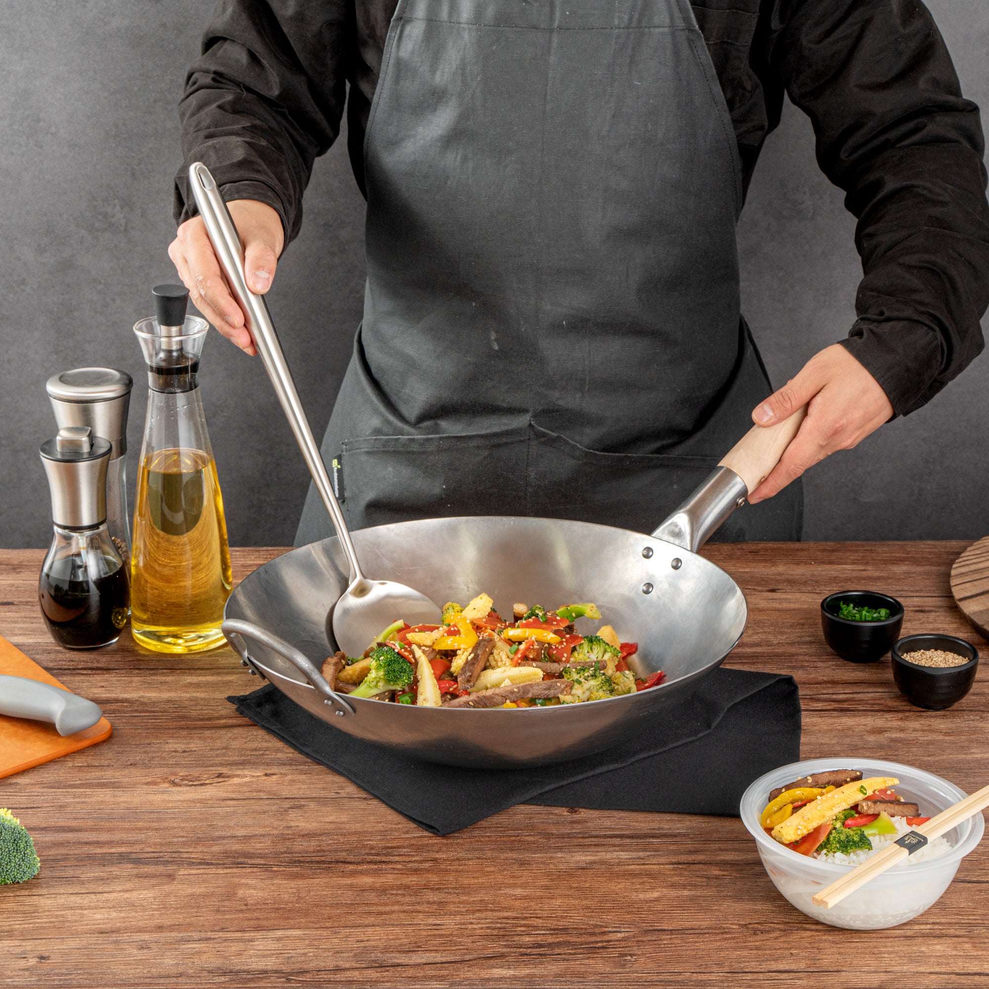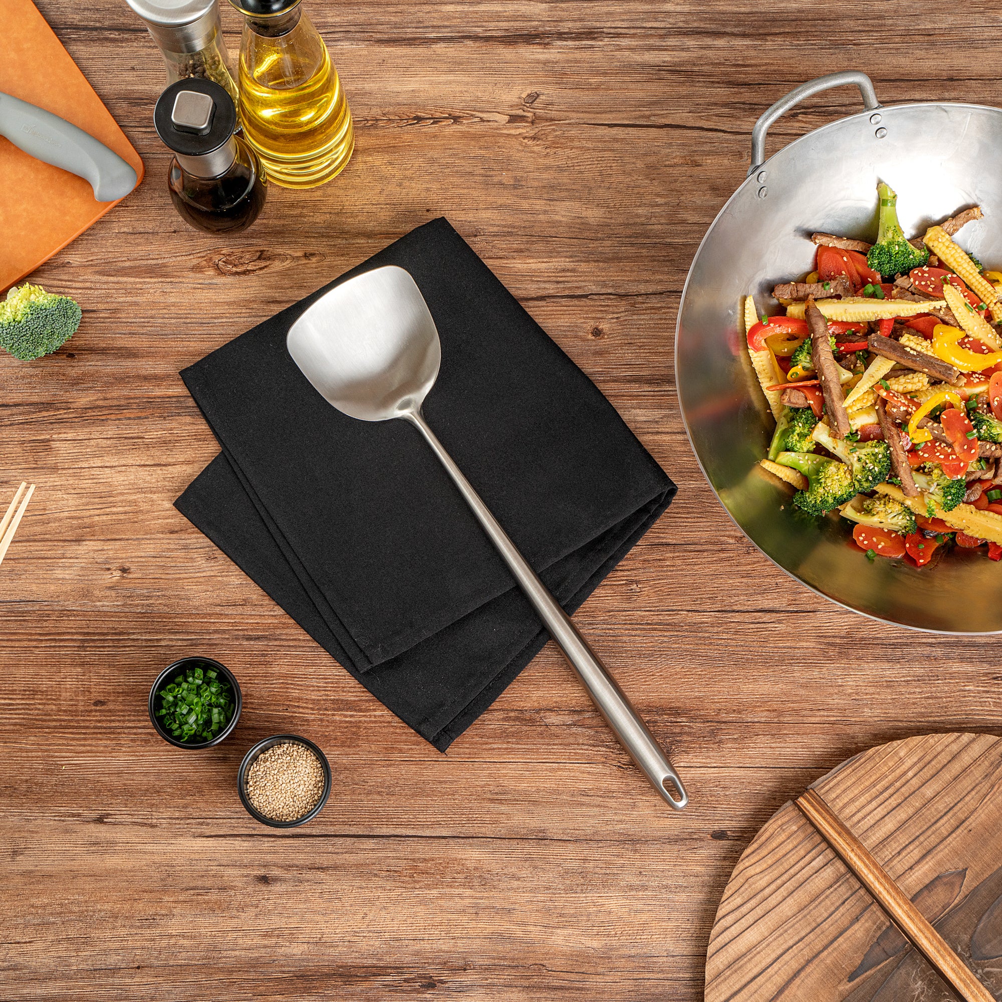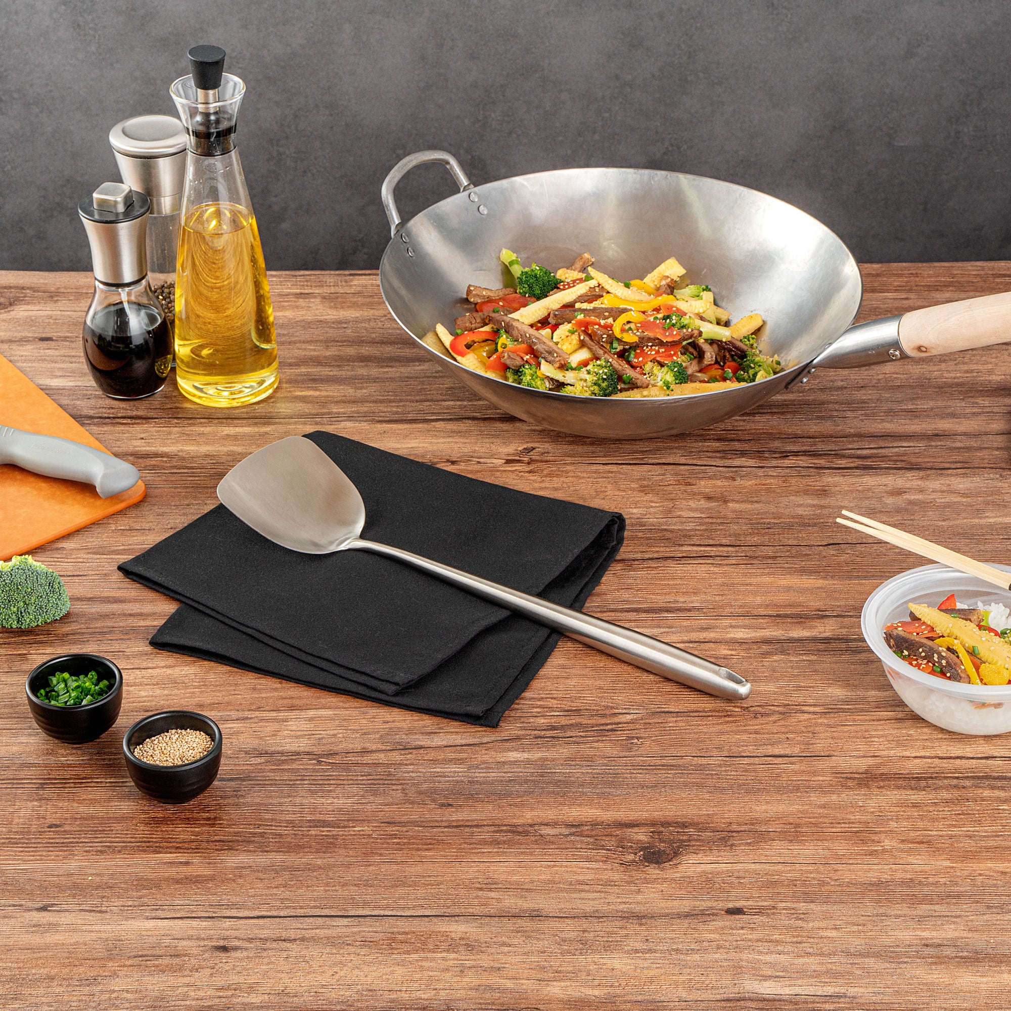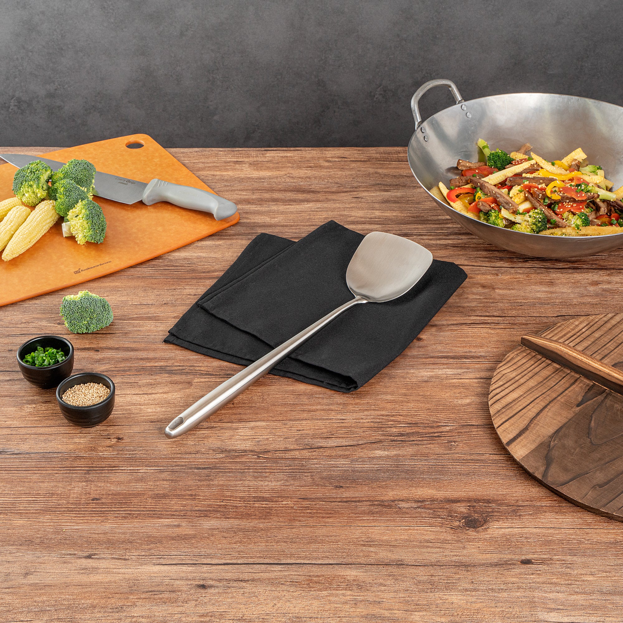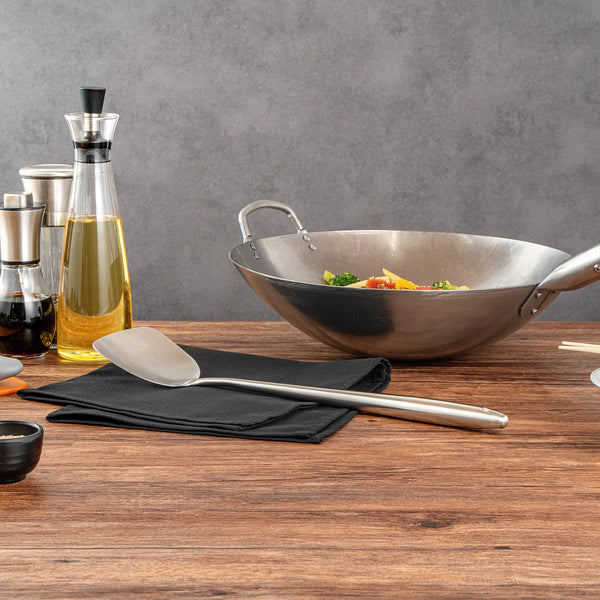 These wok spatulas come in a choice of stainless steel or pre-seasoned carbon steel, offering strength and versatility for all your cooking needs. Perfect for both home and commercial kitchens!