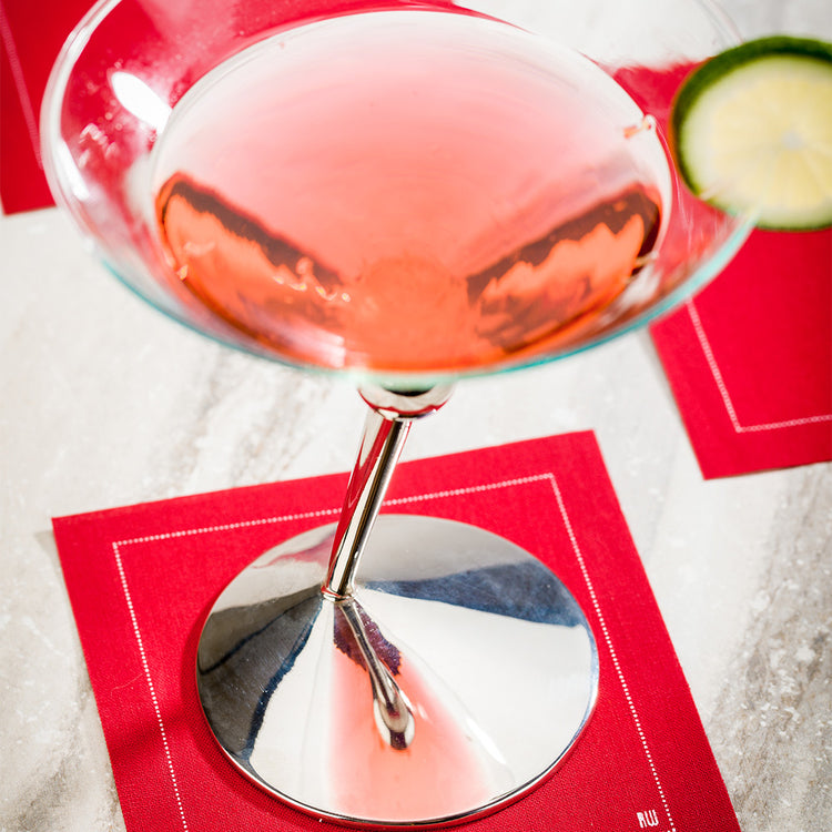 • Red finish elevates the presentation of cocktails, adding a pop of color and style