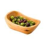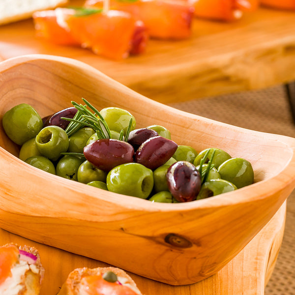 Stylishly offer guests your delicious fares in our Nature Tek 13-ounce Oval Natural Wood Serving Bowl. With its natural wood grain, this beautiful serving bowl gives a rustic look to your servings of gravies, sauces, snacks, and fruits. Handcrafted from durable wood, this wooden serving bowl is lightweight and shatterproof to keep its high-quality look and last you a long time. The unique oval shape of this rustic wooden bowl adds an elegant touch to your food displays and effortlessly matches the settings at your catering event, restaurant, or hotel. Designed with a smooth surface, this handcrafted wooden bowl is easy to wipe down for a quick and simple post-event cleaning process. This 13-ounce wooden snack bowl measures around 7.5 inches in length by 4.25 inches in width and 2.75 inches in height. Due to the handmade nature of this wooden dip bowl, its approximate size, shape, and color will vary. Ships in a 1 count box.