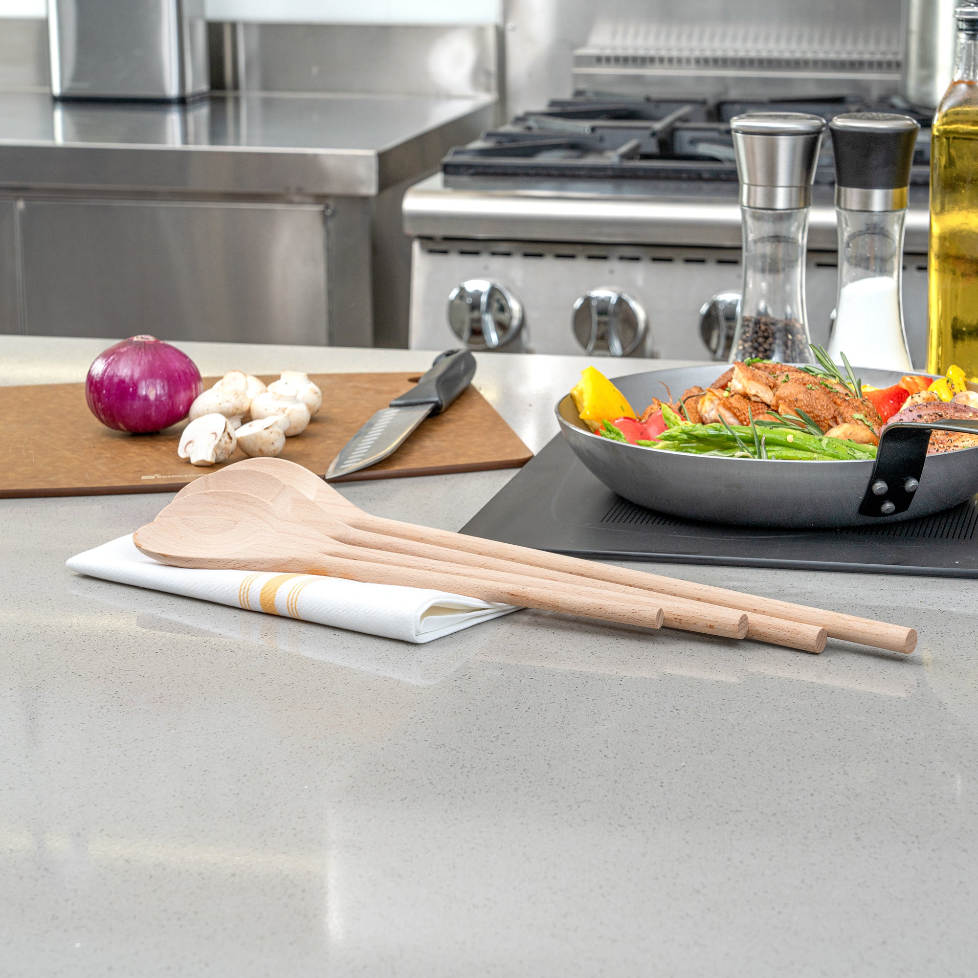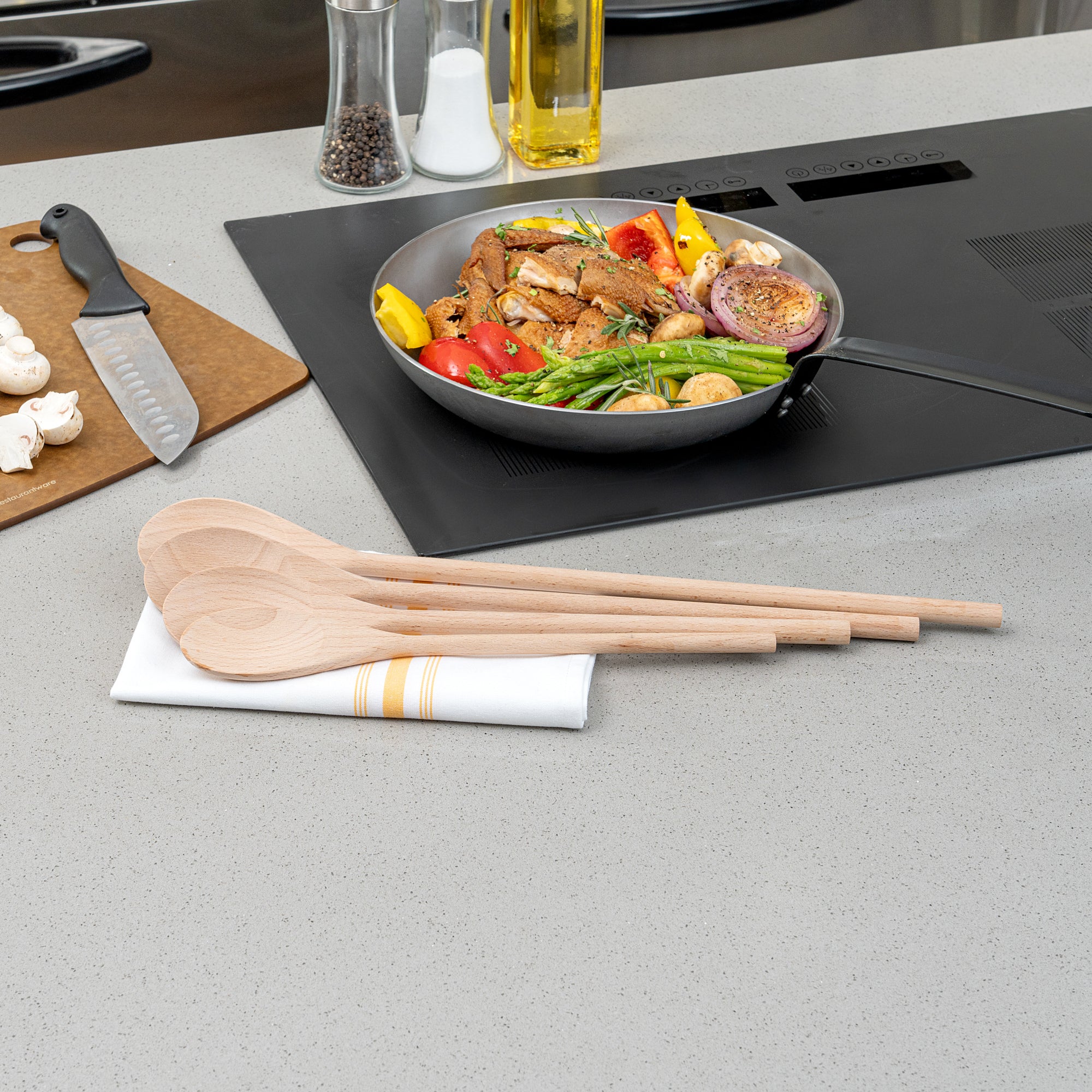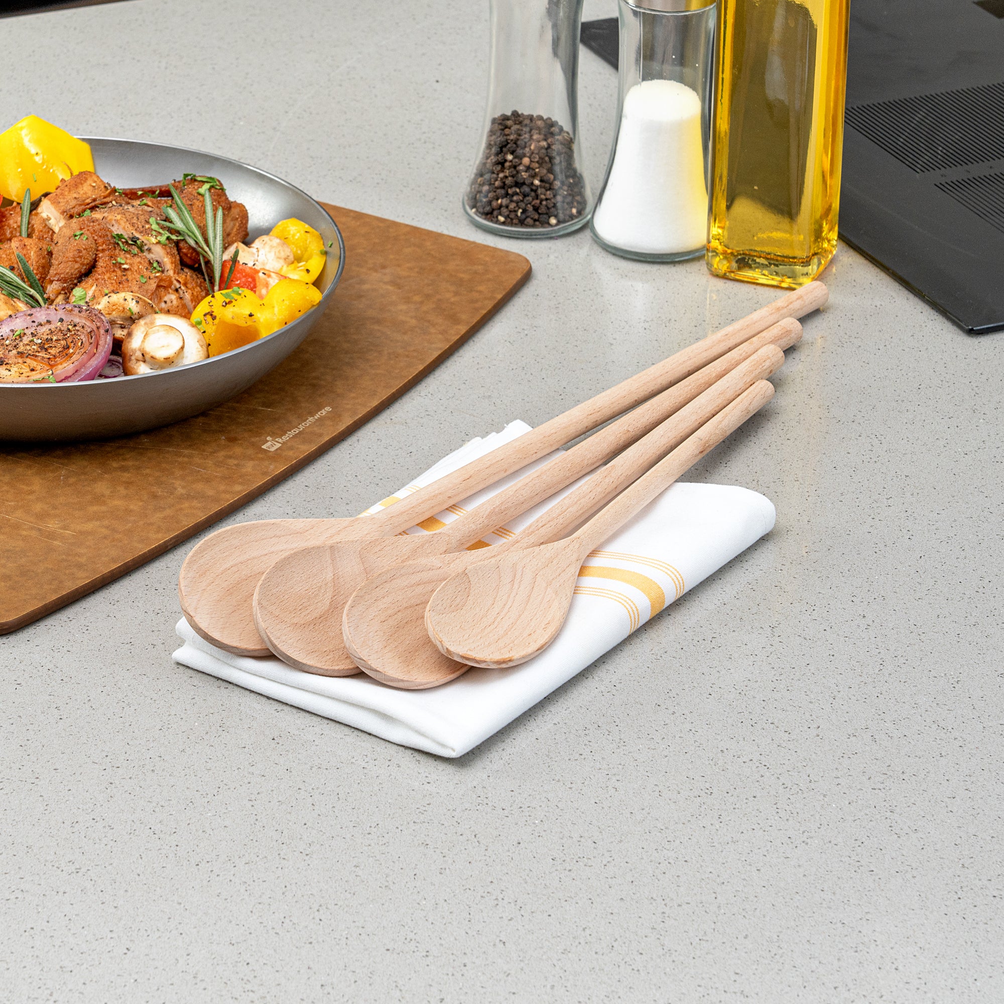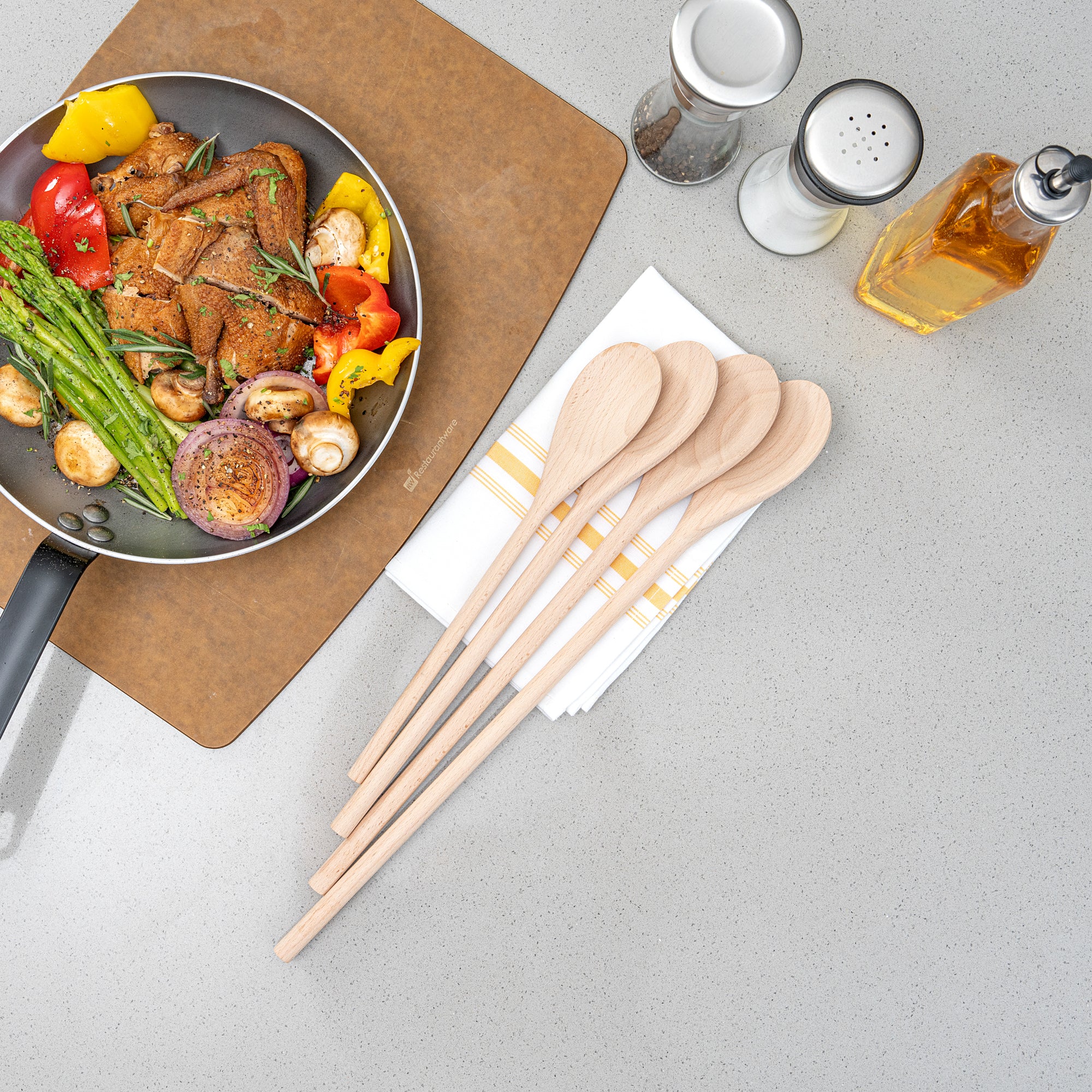 Enhance your kitchen efficiency with versatile beechwood spoons. Nature Tek Greaseproof Wooden Cooking Spoons are crafted from durable, lightweight beechwood, making them great for stirring sauces and soups without scratching nonstick cookware. These wooden cooking spoons come in four sizes, providing flexibility for various kitchen tasks and ensuring the perfect fit for any culinary challenge. Their hot food-friendly design is ideal for soups and sauces, while the greaseproof finish is perfect for handling oily or buttery foods without a mess. Their biodegradable and compostable nature aligns with sustainable practices, making them a responsible choice for eco-conscious kitchens. Elevate your kitchen's functionality with a utensil that balances practicality and sustainability. Each order includes 100 Nature Tek Greaseproof Wooden Cooking Spoons.