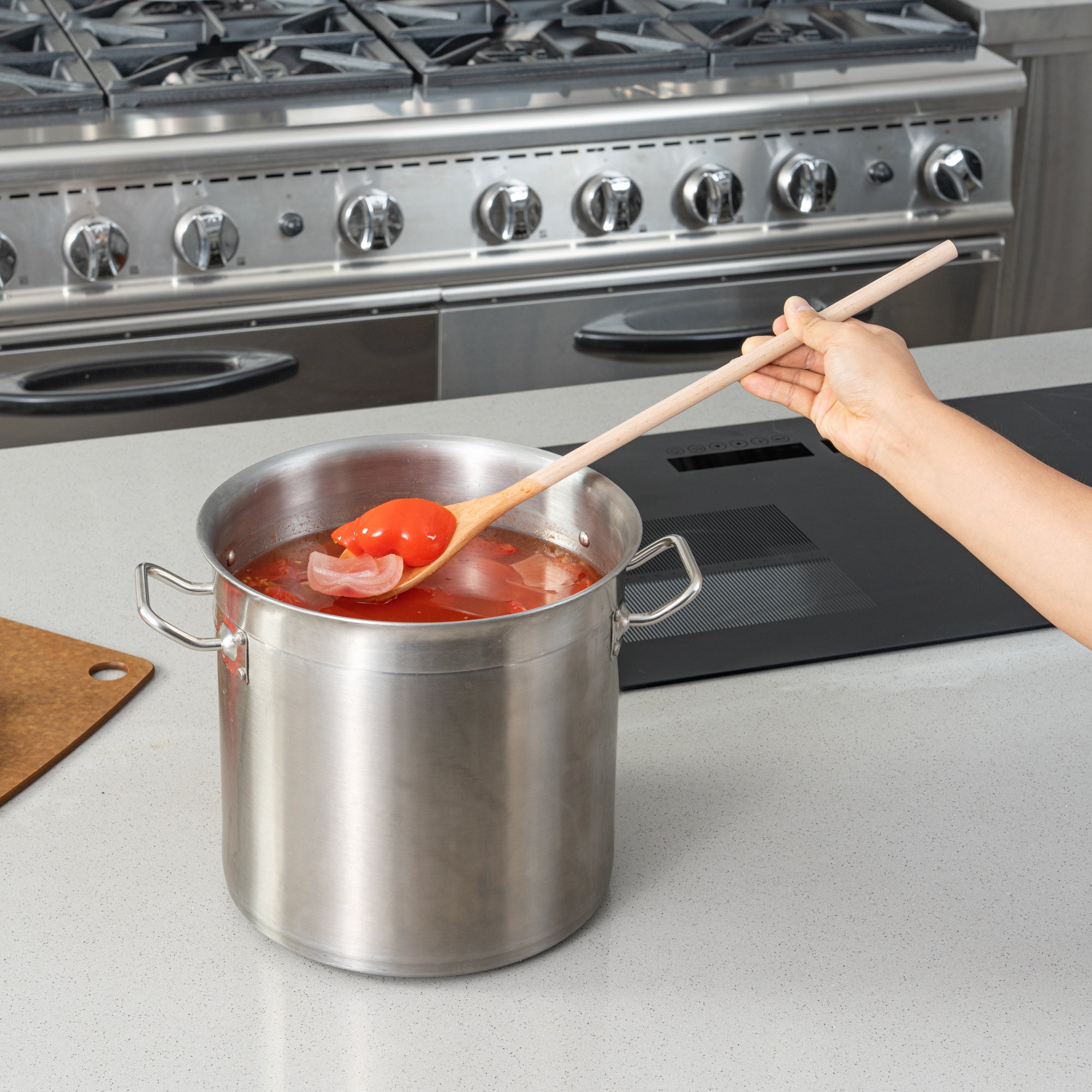 Effortlessly manage large batch cooking with ease. The Nature Tek Heat-Resistant Wooden Cooking Spoon, measuring 17.9 inches long, is crafted from durable, lightweight beechwood, making it the ideal wooden cooking spoon for safe and efficient stirring in deep pots. Its wide head is specifically designed to handle hearty soups and stews, allowing chefs and home cooks alike to use it as a versatile beechwood spoon in professional kitchens. With a greaseproof design, this spoon ensures easy cleaning after use, making it a valuable addition to any kitchen's utensil collection. Perfectly suited for non-stick cookware, this large pot stirring spoon is both compostable and biodegradable, contributing to environmentally friendly practices. Enhance your kitchen's functionality and sustainability by incorporating this essential tool. Each order includes 100 Nature Tek Heat-Resistant Wooden Cooking Spoons.