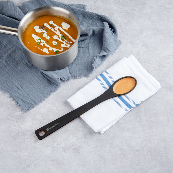 Effortlessly handle kitchen tasks with the Nature Tek Wood Serving Spoon. This wood serving spoon boasts a solid design that lets you serve food conveniently, making it an essential tool for busy kitchens. With its ergonomic 13-inch length, the Nature Tek Wood Serving Spoon reduces hand fatigue, providing easy maneuvering and control, ideal for chefs and foodservice professionals who rely on comfortable and efficient tools. Its sleek black finish enhances any kitchen's aesthetic, ensuring this wooden kitchen spoon complements modern decor. The integrated hanging hole offers easy access and storage solutions, keeping your kitchen organized and utensils within reach. Crafted from biodegradable and compostable wood, this cooking spoon supports environmentally conscious operations without compromising on durability. Enhance your kitchen's functionality with this versatile utensil, perfect for stirring, mixing, and serving a variety of dishes. Each order includes 1 Nature Tek Serving Spoon.