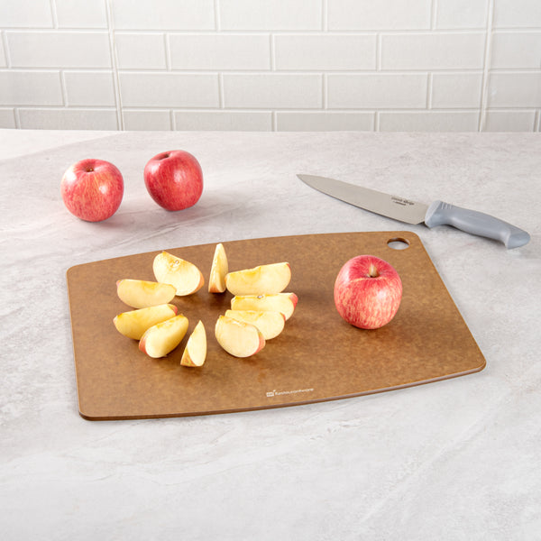 Designed with a thumb-hole handle, these wood composite cutting boards provide a comfortable grip for easily transferring food to a container. Plus, you can just hang them for simple storage.