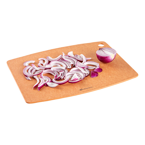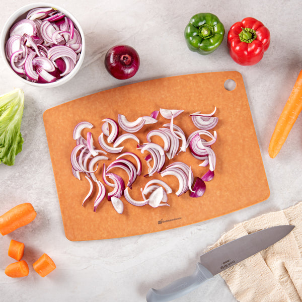 Designed with a thumb-hole handle, these wood composite cutting boards provide a comfortable grip for easily transferring food to a container. Plus, you can just hang them for simple storage.