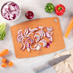 These double-sided cutting boards don't dull knives even after heavy use, as the wood fiber material is gentle on the blades. Can be used with serrated knives too!