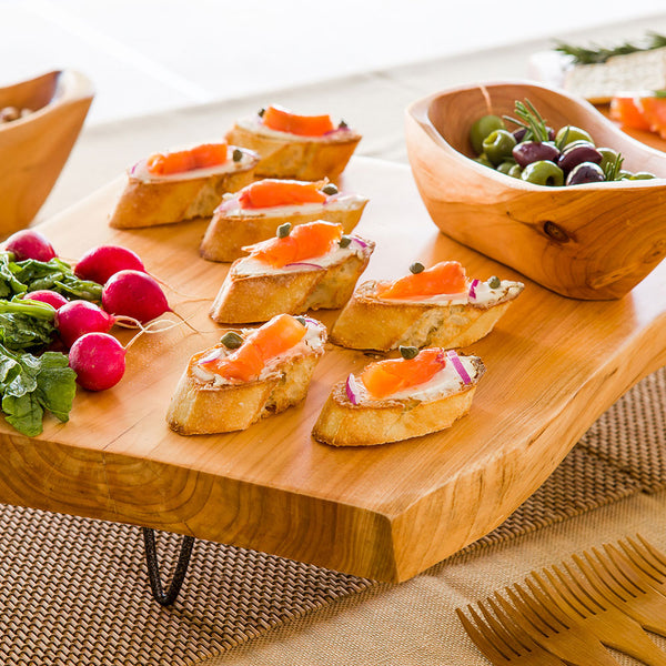 NATURAL WOOD LARGE SERVING STAND - 3-LEGGED