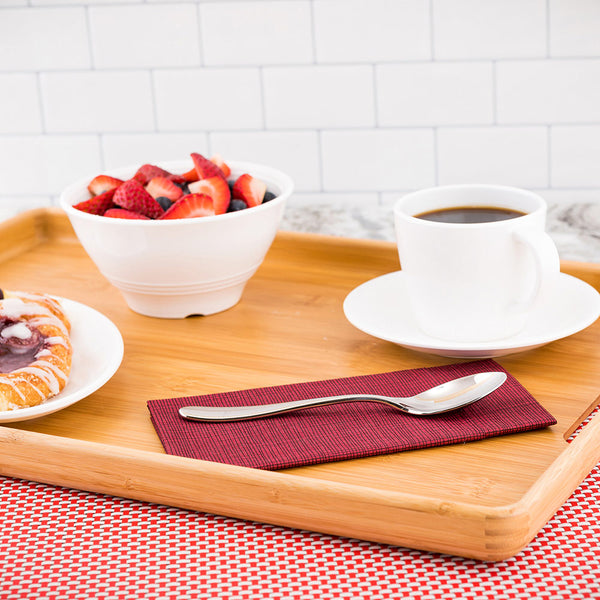 Serve customers a stylish presentation using our Nature Tek Rectangle Natural Bamboo Serving Tray. Featuring built-in handles, this large wooden tray easily transports your dishes, meals, baked goods, or non-food items securely. This large wooden tray has ample space for multiple treats or big presentations to delight and impress your guests. Constructed from natural bamboo, this serving tray is chip-resistant and shatterproof which makes it perfect for high-volume use. The bamboo wood grain of this rectangular serving tray adds a pleasant rural touch to your serving style. This large wooden serving tray with handles enhances the setting of any hotel, bed and breakfast, bakery, catering service, or restaurant. This bamboo serving tray measures 19.75 inches in length by 14 inches in width by 1 inch in height. Sold in a 1 count box.