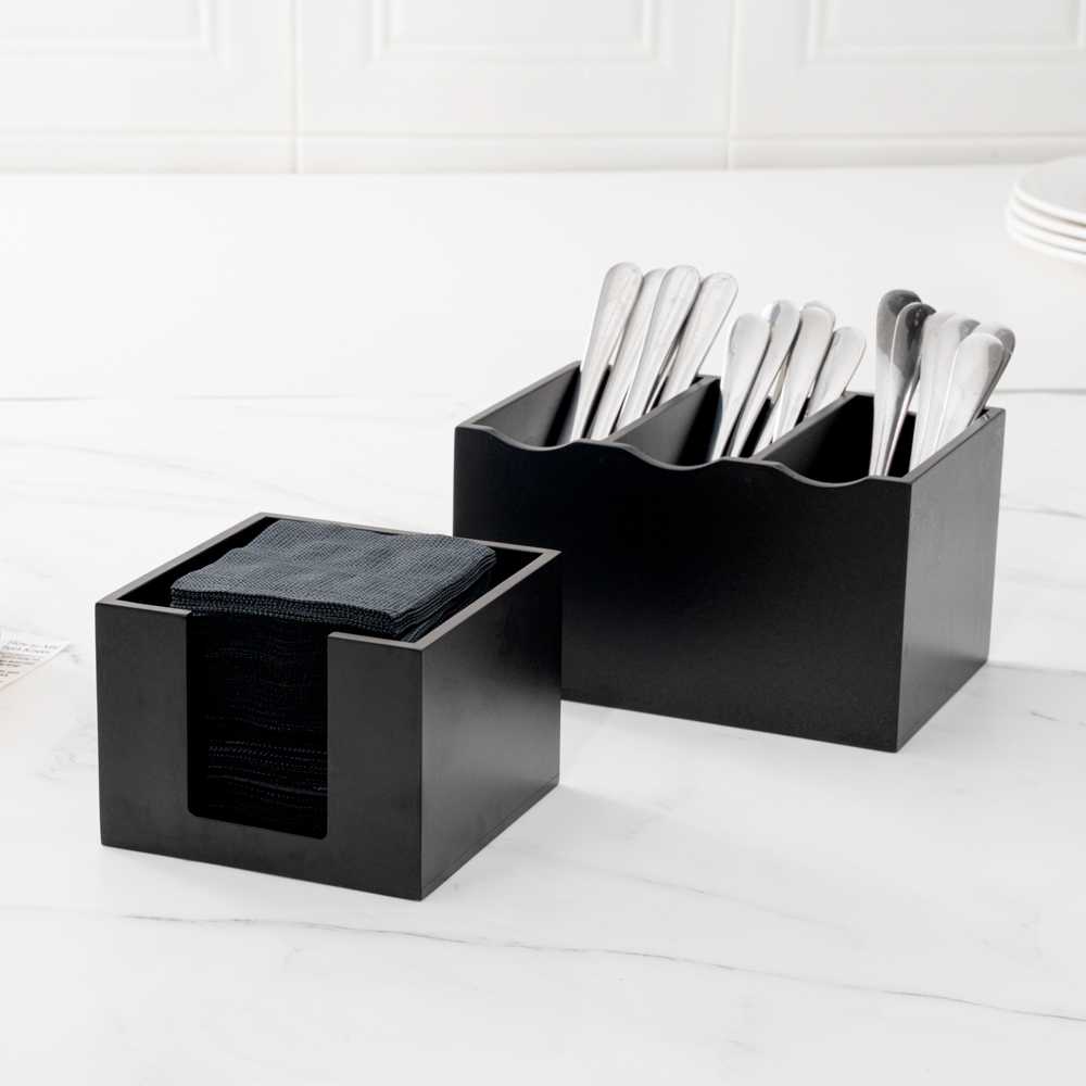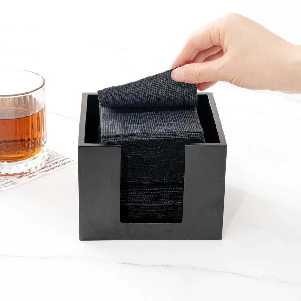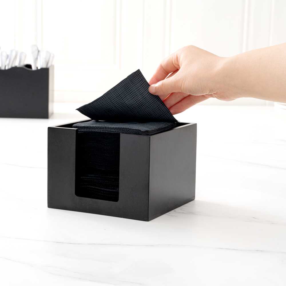 SQUARE BLACK BAMBOO COCKTAIL NAPKIN HOLDER