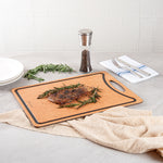 WOOD GOURMET CUTTING BOARD - WITH JUICE GROOVE, HANDLE
