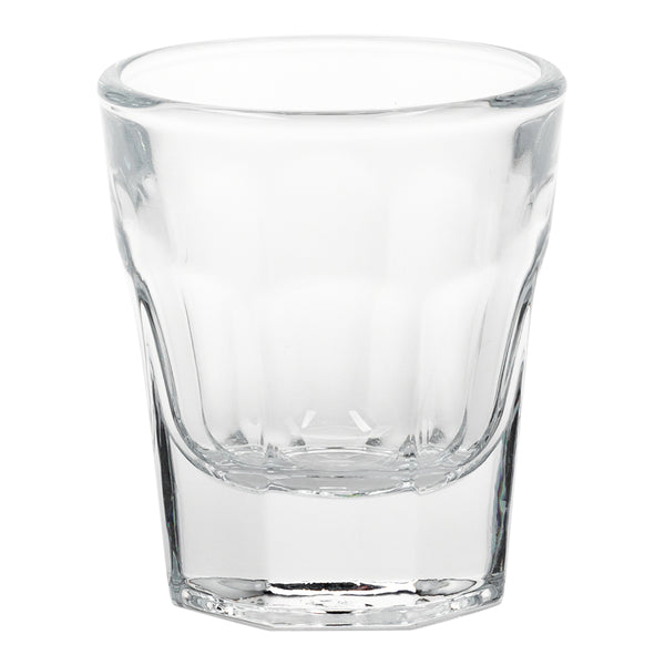 Serve your most potent spirit shots with our Otto 1-ounce Shot Glasses. Manufactured with superior precision, these whiskey shot glasses feature a faceted design for a classic look and a comfortable grip. The lustrous clarity of these premium bar shot glasses showcase your signature whiskey, espresso, vodka, and tequila shots, while the heavy octagonal base provides the perfect balance to avoid spills. Constructed from lead-free tempered glass, these bar shot glasses withstand daily use from customers at your bar, pub, club, hotel, or restaurant. The reinforced durable design also withstands commercial dishwasher use for a quick clean after service hours. These small shot glasses have a 1-ounce capacity and measure 2 inches in height and have a 2-inch diameter. Each order is sold in a set of 6 shot glasses.