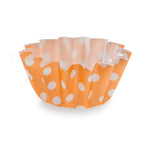 0.4 OZ ROUND POLKA-DOTTED HOT ORANGE PAPER MINI BAKING CUP - FLARED