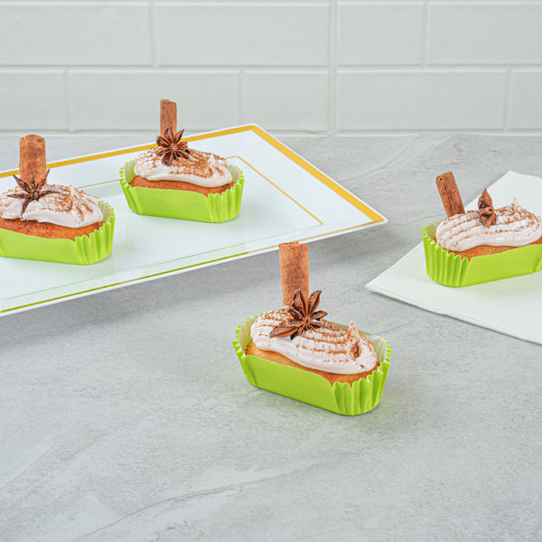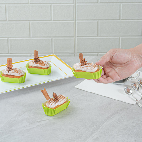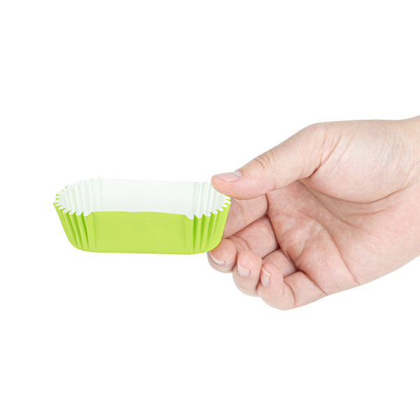 Enhance your bakery's efficiency with exceptional baking tools. Panificio Grease-Resistant Mini Cupcake Liner offers a grease-resistant coating, ensuring easy release of your sweet creations and maintaining a professional presentation. Measuring 3.5 inches in length and 1.5 inches in width, these mini cupcake liners are perfect for crafting bite-sized delights that won't stick. The ridged design of this oven-safe baking cup beautifully accentuates your pastries, making them visually appealing for any event. Crafted from heavyweight paper, these liners can withstand oven temperatures up to 425 degrees Fahrenheit, offering reliability in a busy kitchen. The striking green color adds a vibrant touch to your dessert trays, while the disposable nature simplifies cleanup. Opt for these greaseproof cupcake liners to elevate your baking results with ease. Each order includes 200 Panificio Grease-Resistant Mini Cupcake Liners.