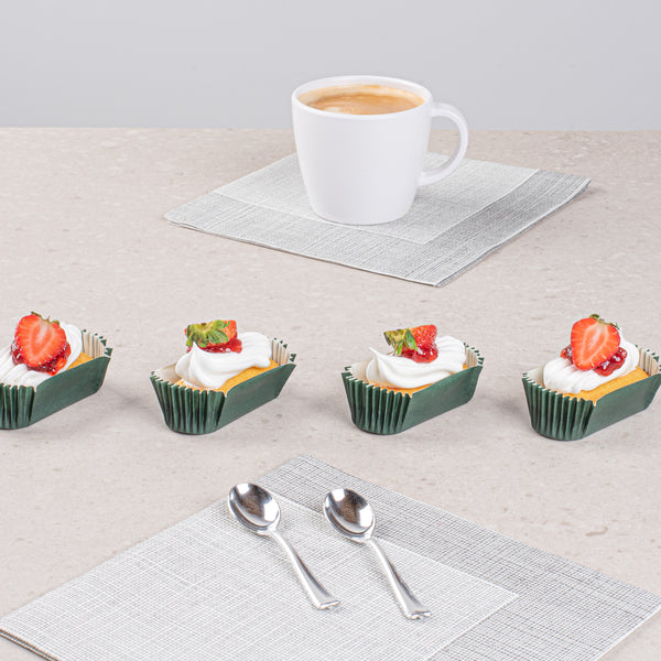 Ensure flawless presentation with grease-resistant cupcake liners. Panificio Grease-Resistant Paper Baking Cups feature a grease-resistant coating that ensures easy release of treats, keeping your cupcakes or muffins intact and your baking trays spotless. Constructed from heavyweight paper, these mini baking cups can withstand temperatures up to 425 degrees Fahrenheit, making them oven-safe for any baking task. The ridged design of these 3.5-inch by 1.5-inch cups beautifully accentuates your baked goods, adding a touch of elegance to your desserts. The vibrant green color complements any theme, while the disposable nature of these cups simplifies cleanup, saving you valuable time in busy kitchens. Ideal for bakeries, cafes, and catering services, these paper baking cups enhance the presentation of your confections and ensure effortless serving. Each order includes 200 Panificio Grease-Resistant Paper Baking Cups.
