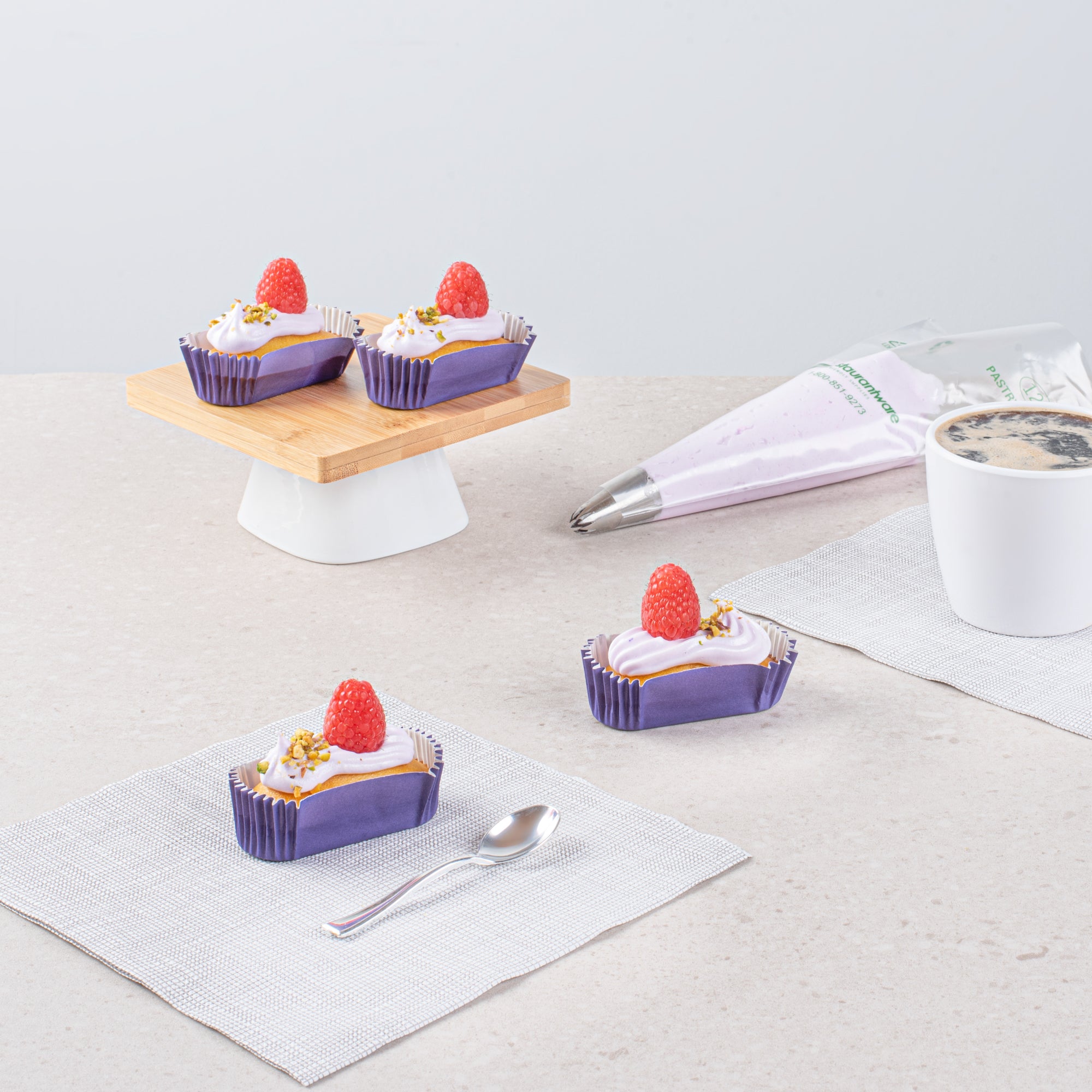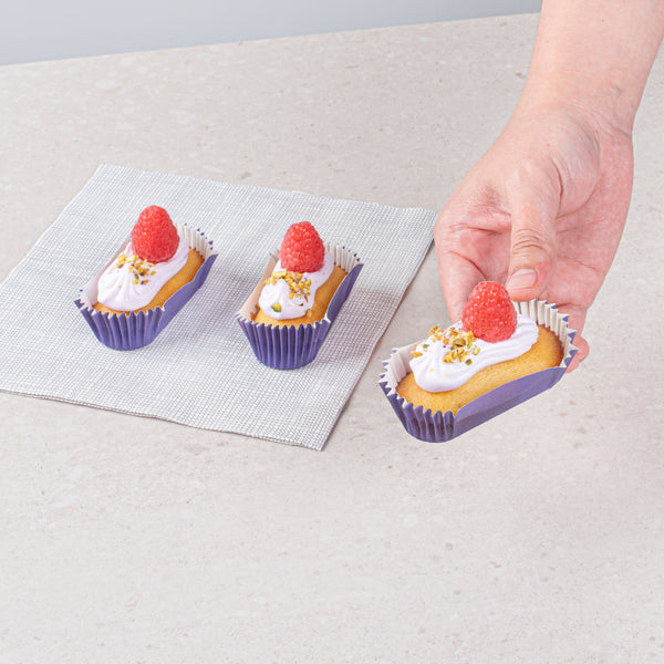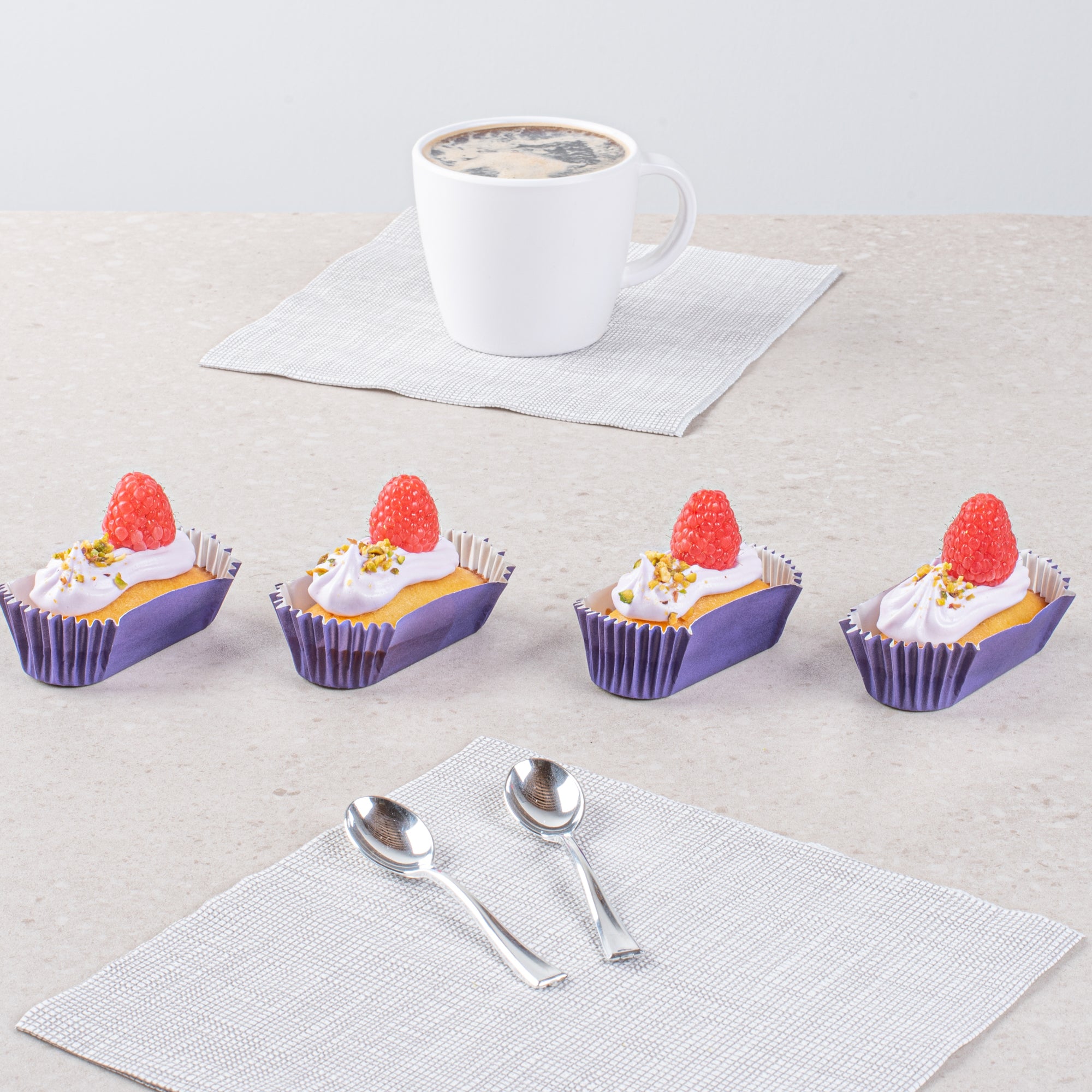 Enhance presentation while simplifying cleanup with these versatile liners. Panificio Purple Grease-Resistant Paper Baking Cup features a specialized grease-resistant coating that ensures easy release of baked goods, making it an essential paper baking cup for busy bakeries. The ridged design not only adds an elegant touch but also highlights the presentation of pastries and cupcakes, perfect when using a mini cupcake liner for special occasions. With the ability to withstand high oven temperatures up to 425 degrees Fahrenheit, these liners ensure consistent baking results, positioning them as an ideal cupcake liner for professional kitchens. Constructed from heavyweight paper, these liners measure 3.5 inches in length and 1.5 inches in width, providing ample space for your creations while maintaining their structural integrity. Elevate your bakery's efficiency and aesthetic with these indispensable liners. Each order includes 200 Panificio Purple Grease-Resistant Paper Baking Cups.