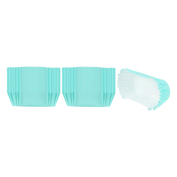 Ensure flawless presentation with grease-resistant cupcake liners. Panificio Turquoise Grease-Resistant Cupcake Liners feature a specialized coating that ensures your baked treats release effortlessly, keeping presentation pristine and minimizing waste. Crafted from heavyweight paper, these liners withstand high oven temperatures up to 425 degrees Fahrenheit, making them ideal for busy bakeries and cafes needing reliable muffin liners. The ridged design of these paper baking cups beautifully accentuates cupcakes and muffins, elevating the visual appeal of your creations. Measuring 3.5 inches in length and 1.5 inches in width, these liners provide ample space for standard-sized treats while ensuring easy handling. The vibrant turquoise color adds a pop of color to any display, enhancing your bakery's aesthetic. Elevate your baking efficiency and presentation with these reliable cupcake liners. Each order includes 200 Panificio Turquoise Grease-Resistant Cupcake Liners.