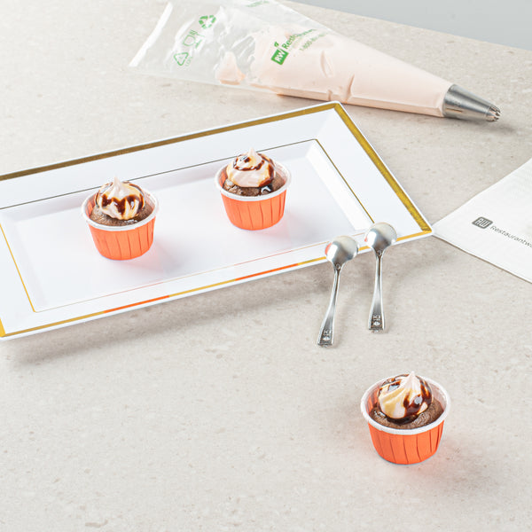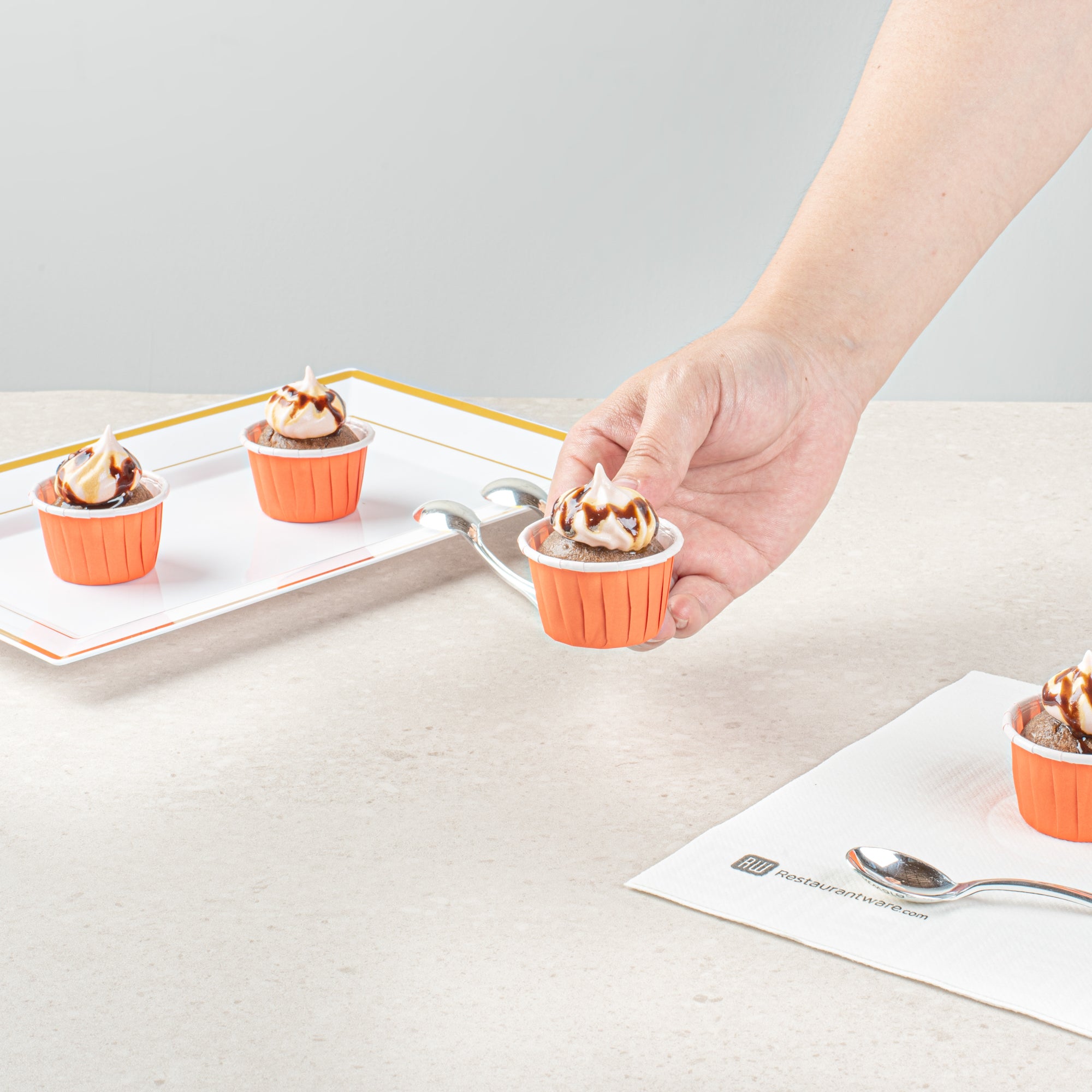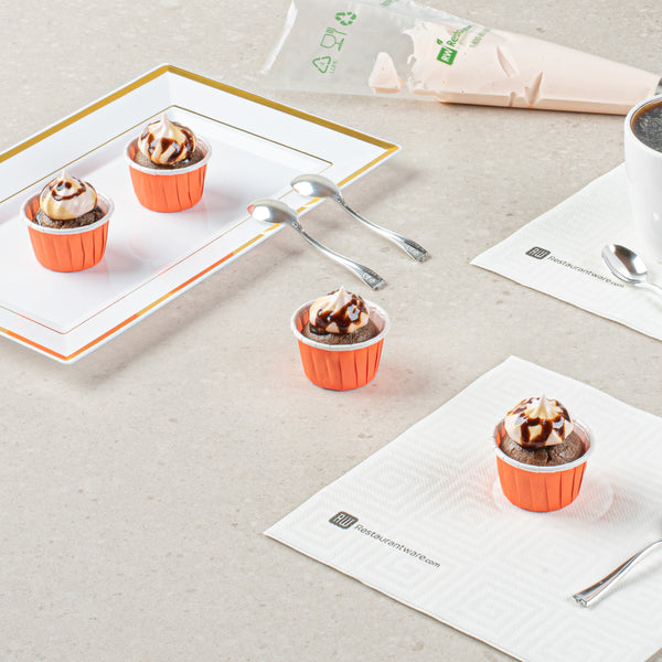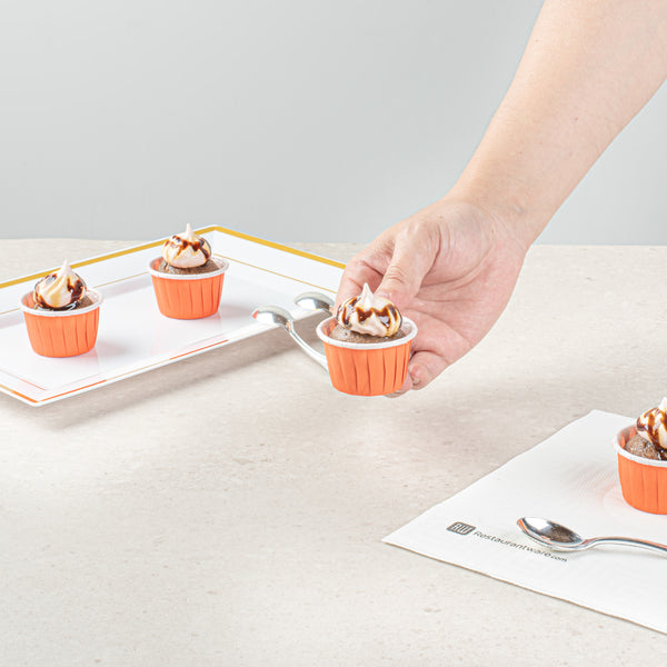 Ensure flawless presentation with the Panificio Grease-Resistant Paper Baking Cup. Featuring a dependable grease-resistant coating, these paper baking cups guarantee easy release and maintain the pristine appearance of your baked goods, making them an essential tool for any bakery or kitchen. Crafted from heavyweight paper, they are oven-safe and withstand temperatures up to 425 degrees Fahrenheit, offering flexibility and reliability for various baking applications. The pleated design of these muffin liners beautifully accentuates your creations, enhancing their visual appeal and enticing customers. With dimensions of 2 inches by 2 inches, these non-stick baking cups provide a perfect fit for standard-sized muffins and cupcakes. Their vibrant tangerine color adds a cheerful touch to your presentations, capturing attention and enhancing the dining experience. Streamline your baking process and elevate your offerings by choosing these grease-resistant, disposable paper baking cups. Each order includes 200 Panificio Grease-Resistant Paper Baking Cups.