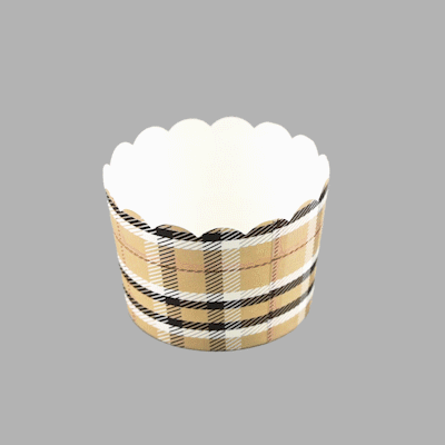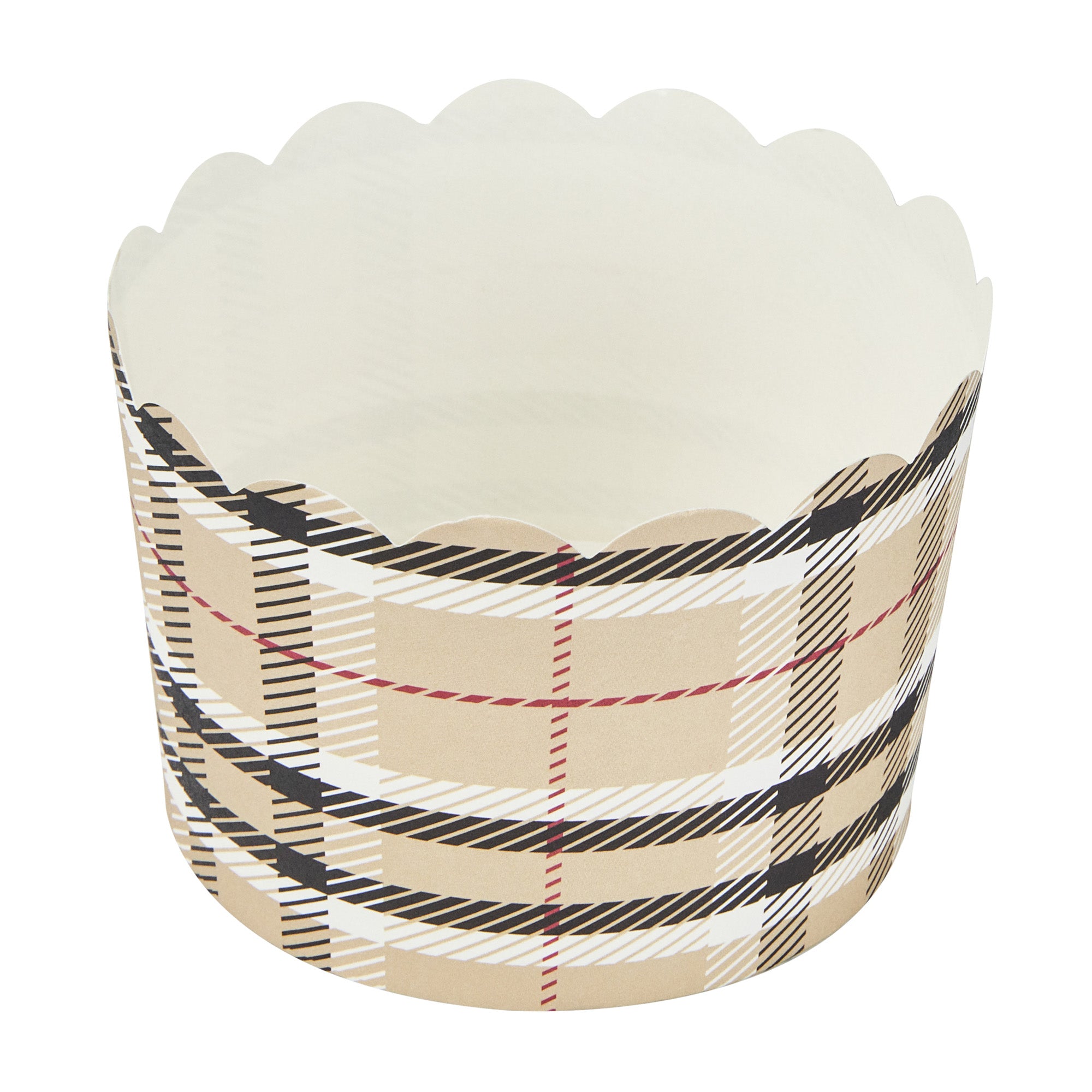 10 OZ ROUND PLAID PAPER JUMBO BAKING CUP - SCALLOPED