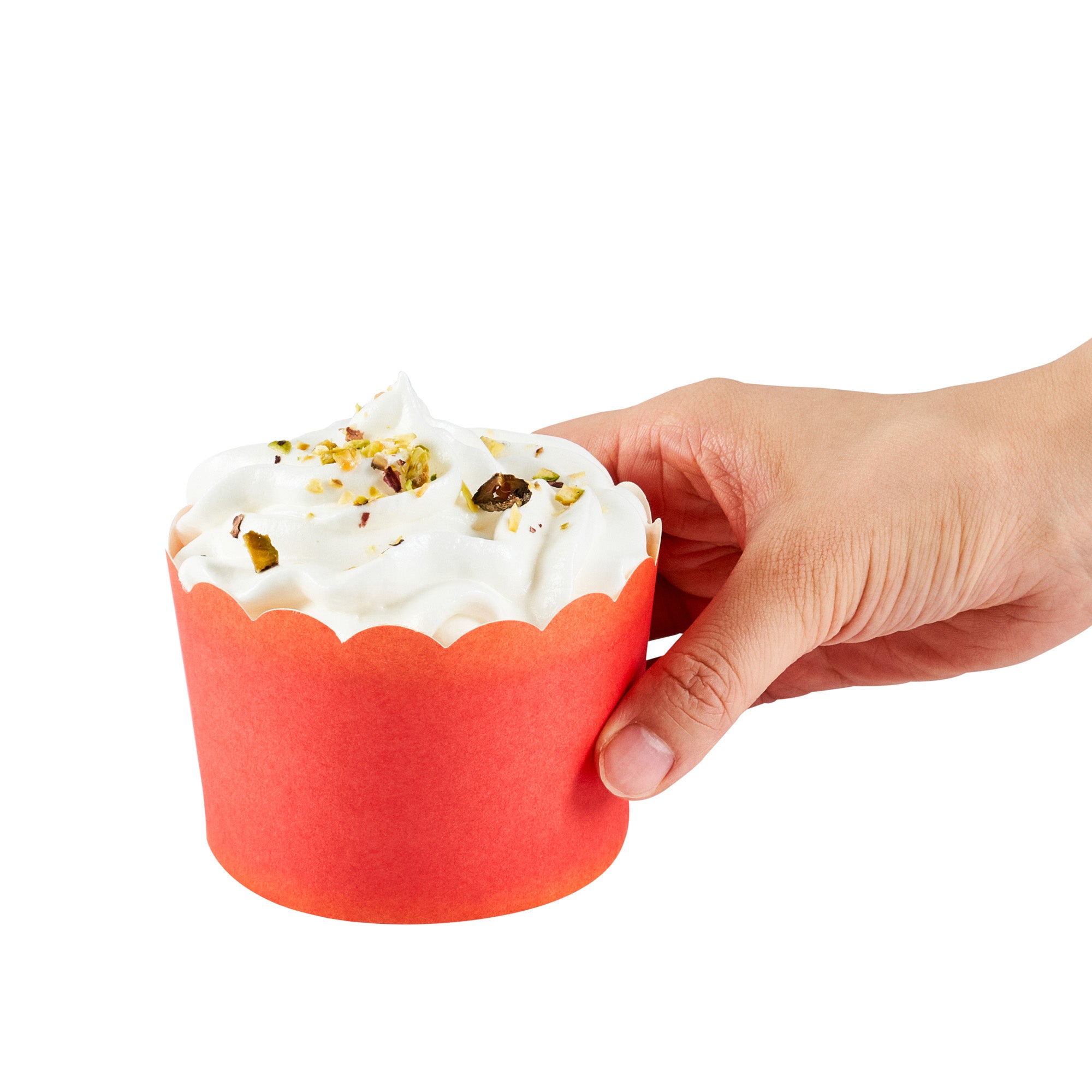 10 OZ ROUND RED PAPER JUMBO BAKING CUP - SCALLOPED