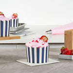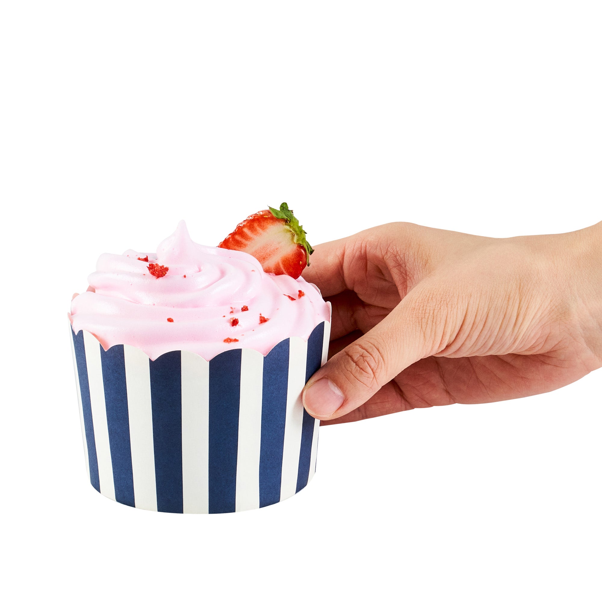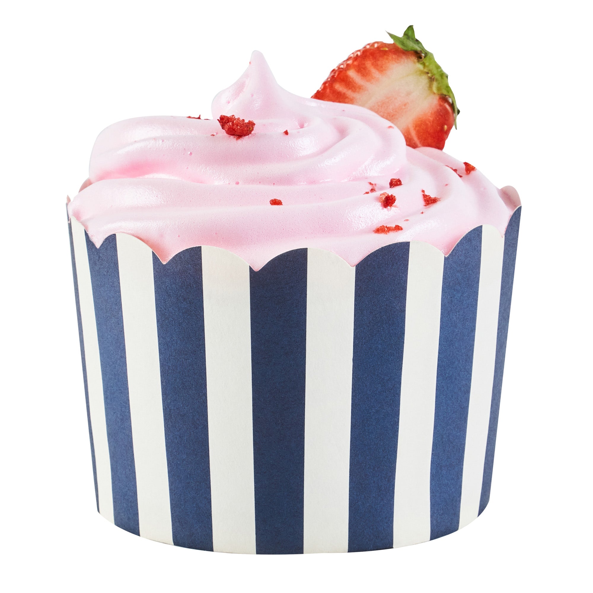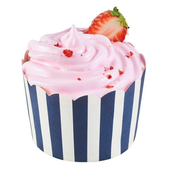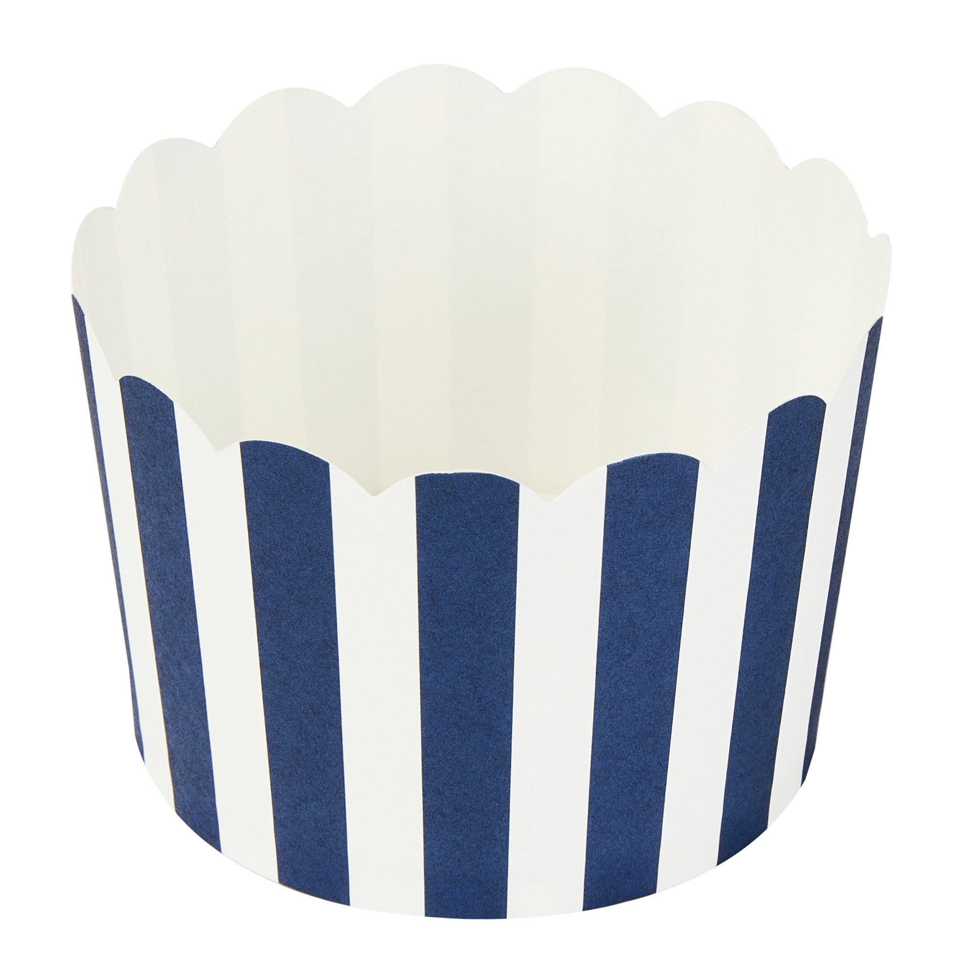 10 OZ ROUND STRIPE BLUE PAPER JUMBO BAKING CUP - SCALLOPED