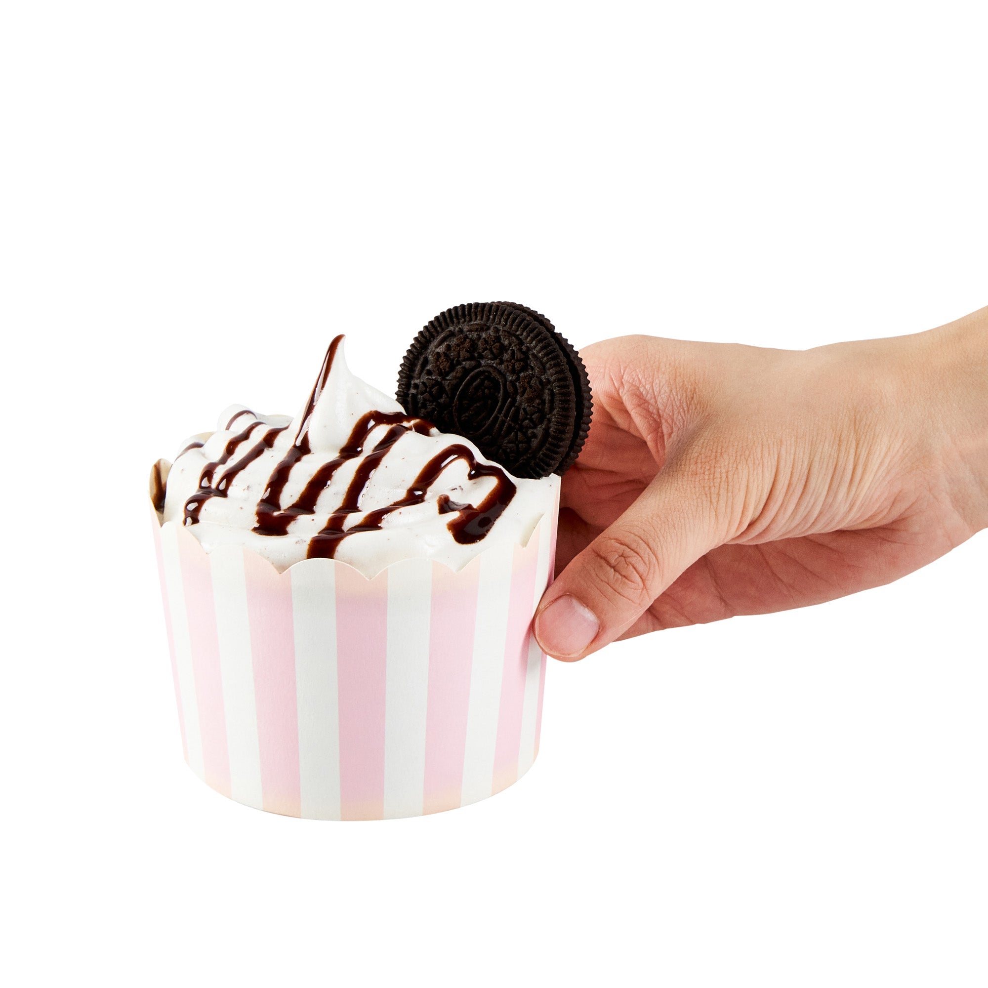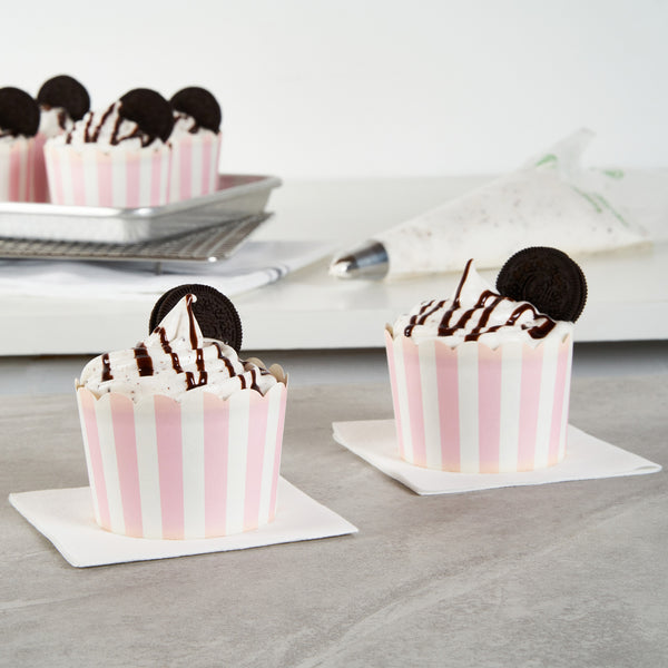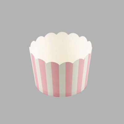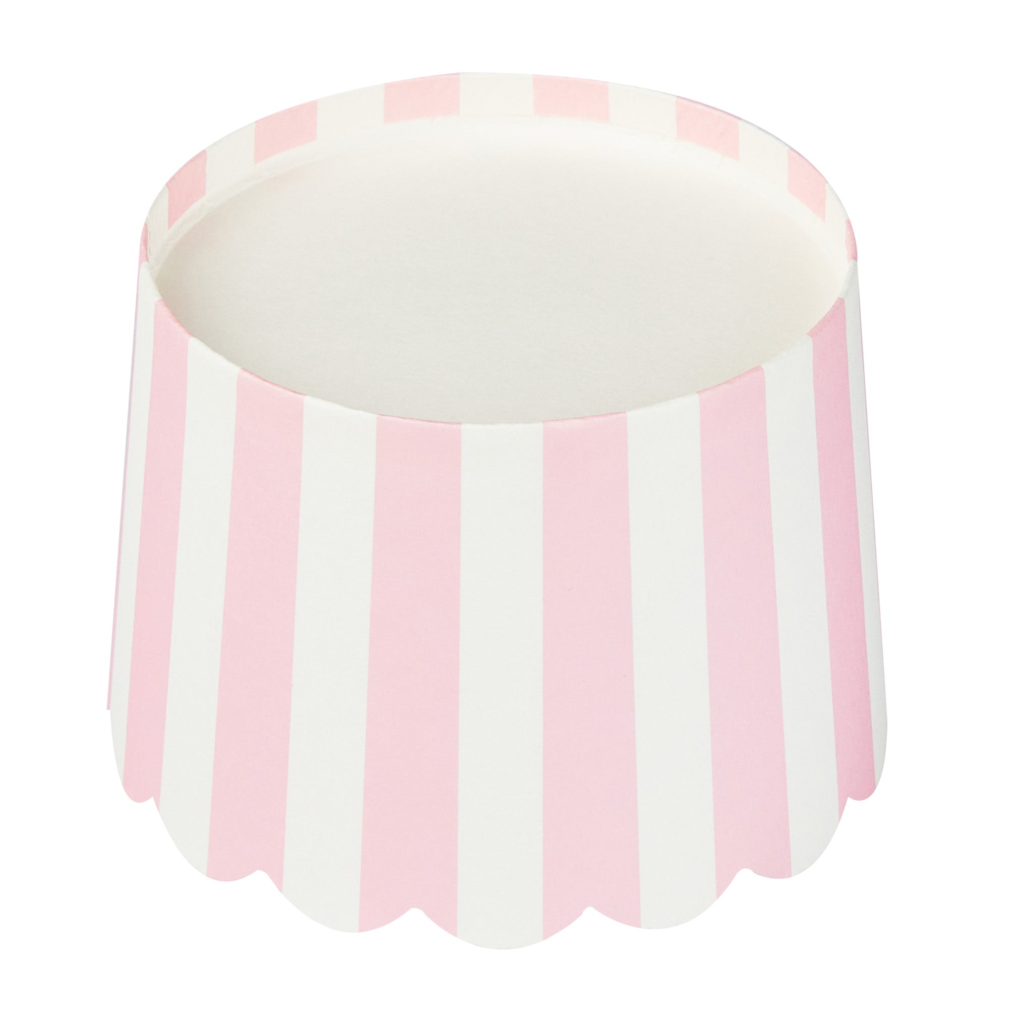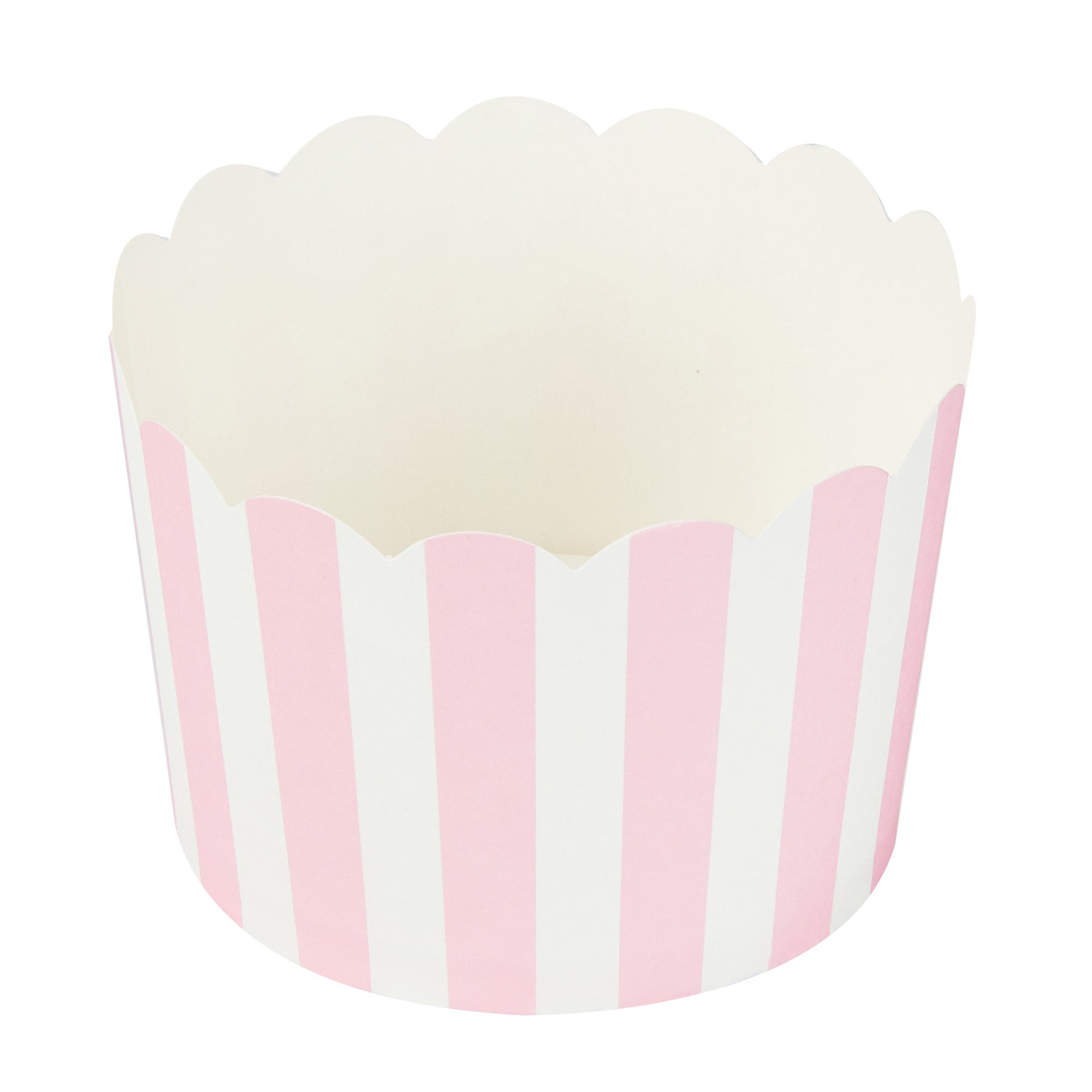 10 OZ ROUND STRIPE PINK PAPER JUMBO BAKING CUP - SCALLOPED