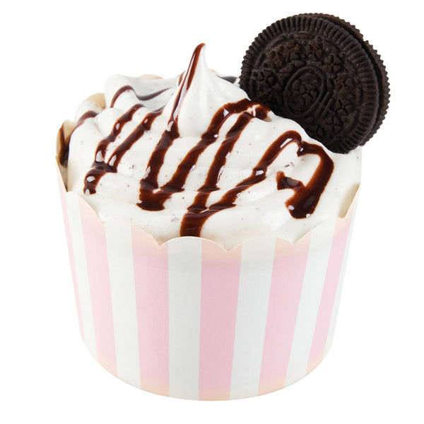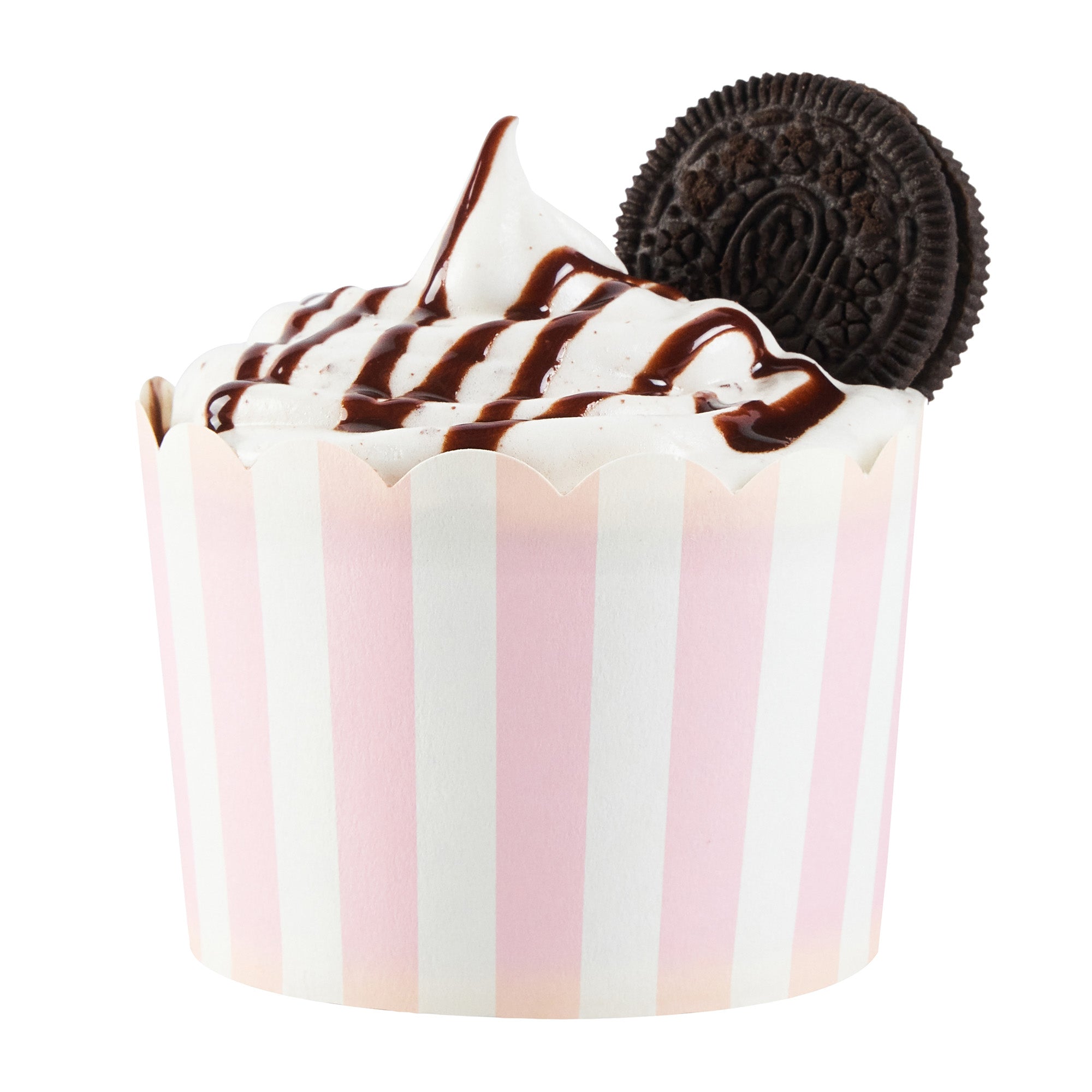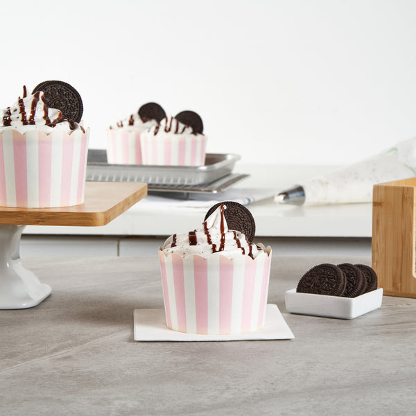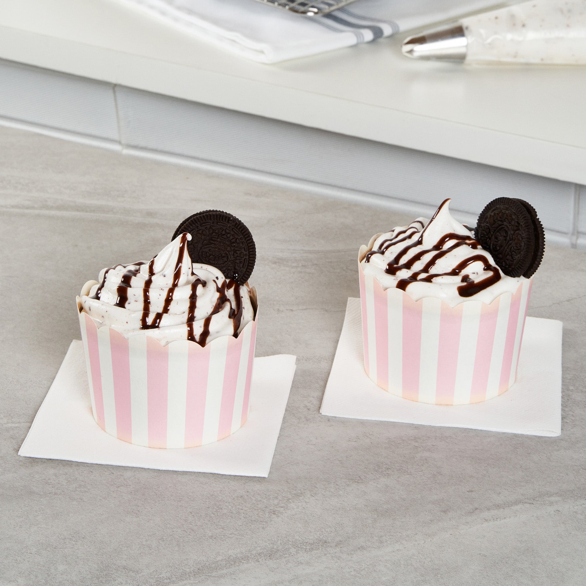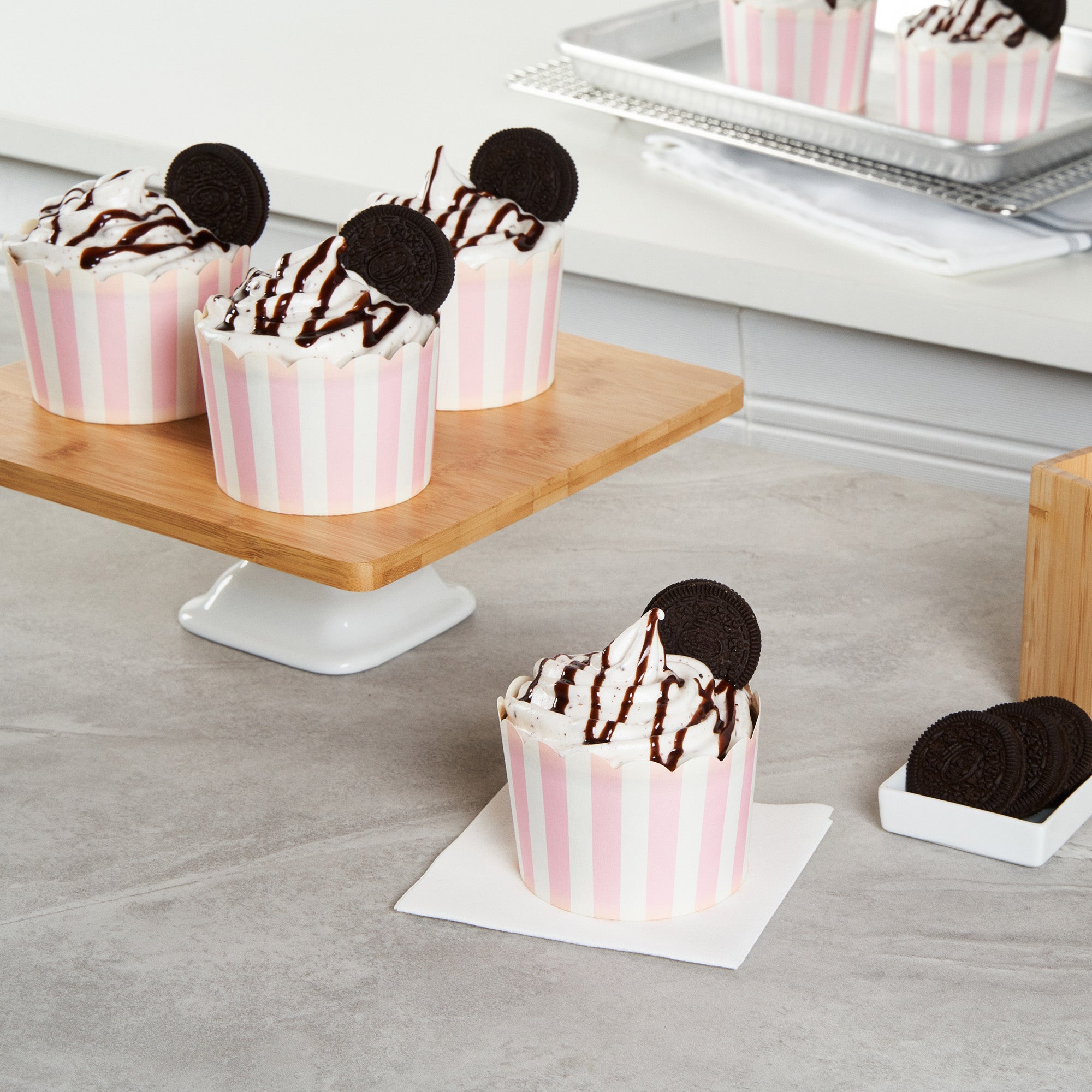 10 OZ ROUND STRIPE PINK PAPER JUMBO BAKING CUP - SCALLOPED