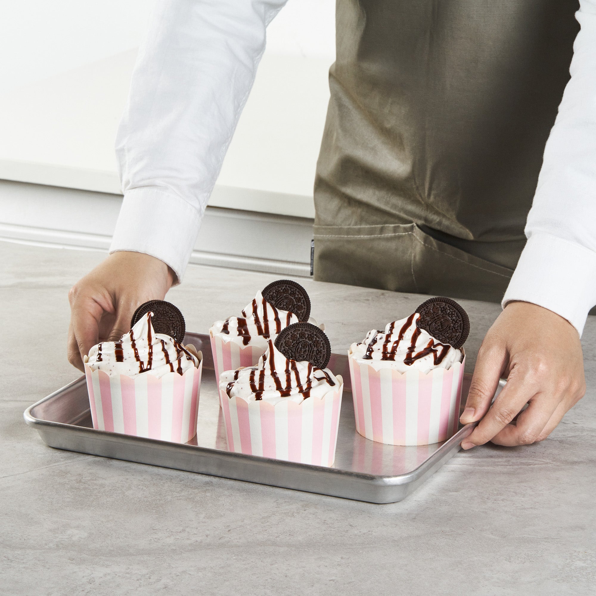 Elevate your dessert presentation with style and functionality. The Panificio Greaseproof Jumbo Baking Cup is expertly crafted from greaseproof paper, ensuring your baked goods are effortlessly released without sticking, enhancing the efficiency of foodservice operations. With its distinct scalloped edges, this jumbo baking cup adds an elegant flair to your confection displays, making it a perfect choice for upscale bakeries and cafes. Designed with a generous 10-ounce capacity, it accommodates larger portions, ideal for jumbo-sized muffins or cupcakes, boosting customer satisfaction. Measuring 3.5 inches in diameter and 2.5 inches in height, these oven-ready paper baking cups streamline the baking process, saving time and resources for busy chefs and bakers. Transform your cupcake presentations and reinforce your commitment to quality with this professional-grade solution. Each order includes 200 Panificio Greaseproof Jumbo Baking Cups.