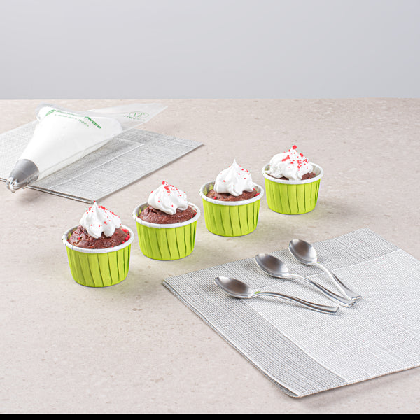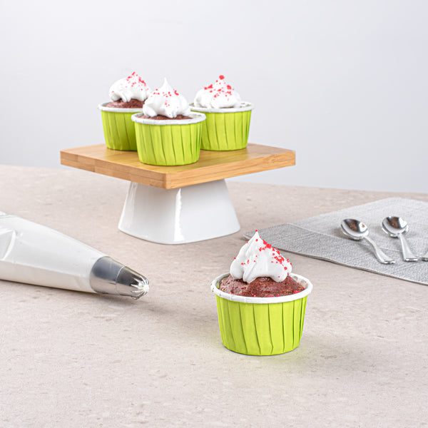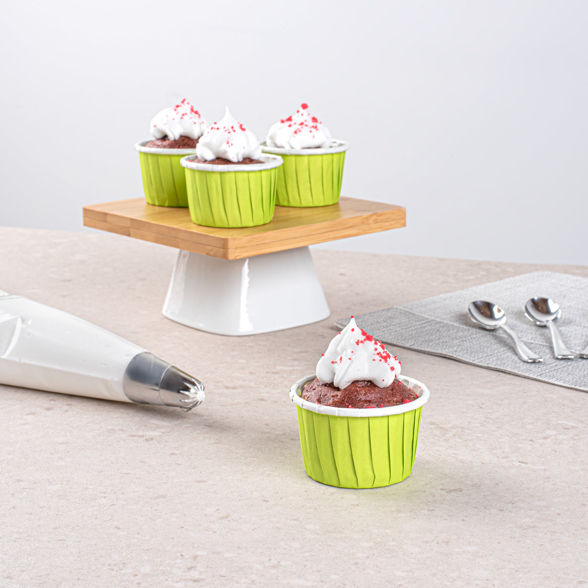 - Pleated design accentuates cookies, cupcakes, and pastries