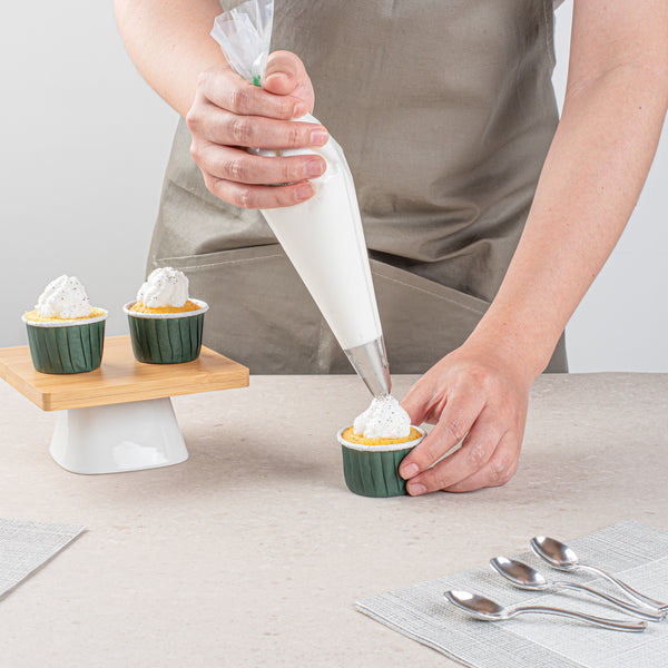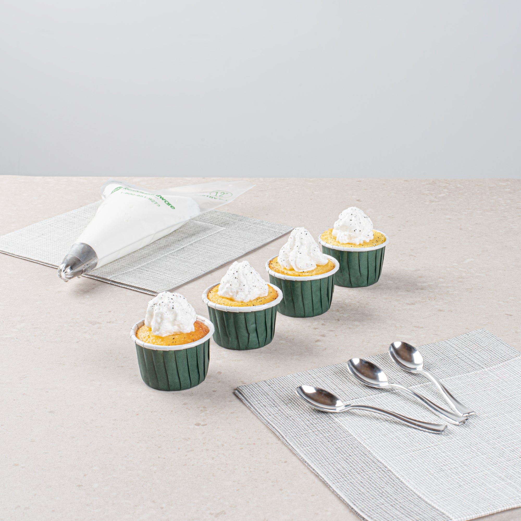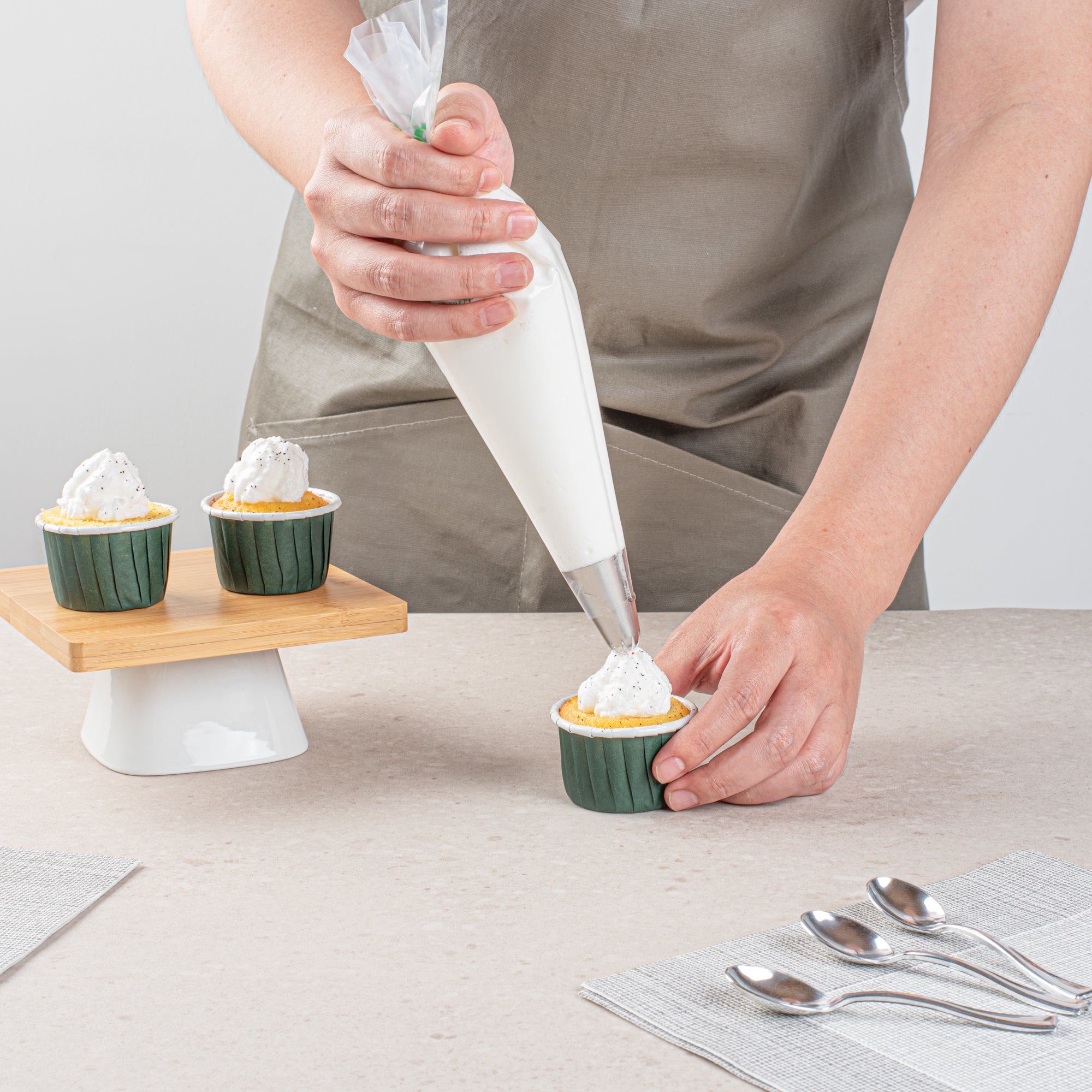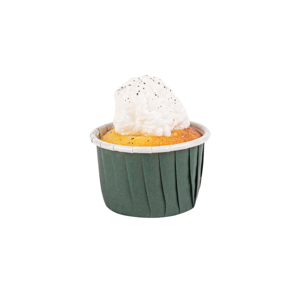 Enhance your pastry presentation with vibrant, reliable liners. Panificio Grease-Resistant Paper Baking Cup prevents baked treats from sticking, ensuring easy release of muffins and cupcakes. Made from heavyweight paper, these oven-safe liners can withstand temperatures up to 425 degrees Fahrenheit, making them ideal for high-heat baking environments. The pleated design of this pleated cupcake liner beautifully accentuates your cupcakes and baked goods, adding a touch of elegance to your display. With a compact size of 2.25 inches in length and width, these green baking cups are perfect for standard-sized cupcakes. The grease-resistant baking cup is also freezer-safe and disposable, providing convenience for busy kitchens. Equip your bakery with these essential paper baking cups to streamline service and elevate presentation. Each order includes 200 Panificio Grease-Resistant Paper Baking Cup.