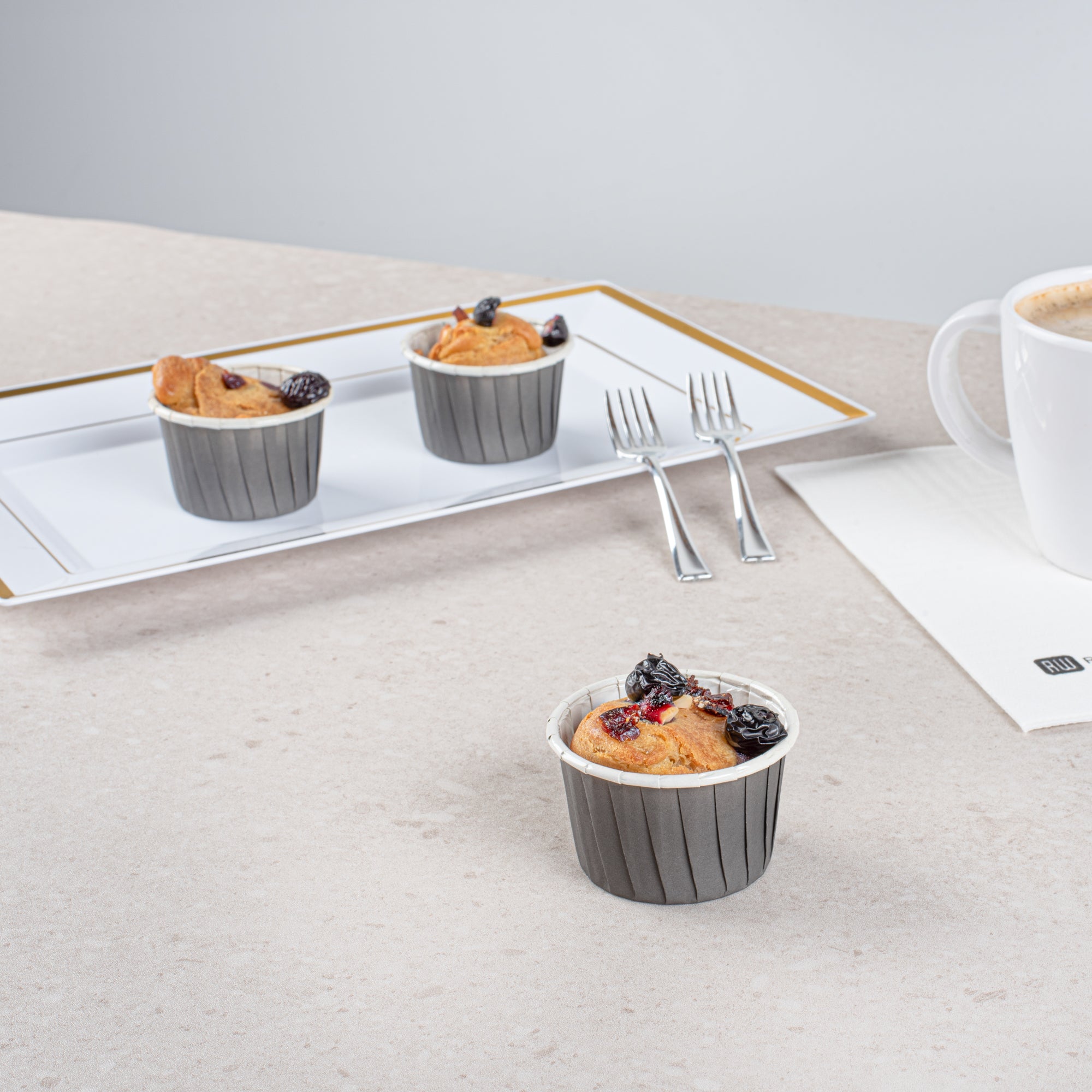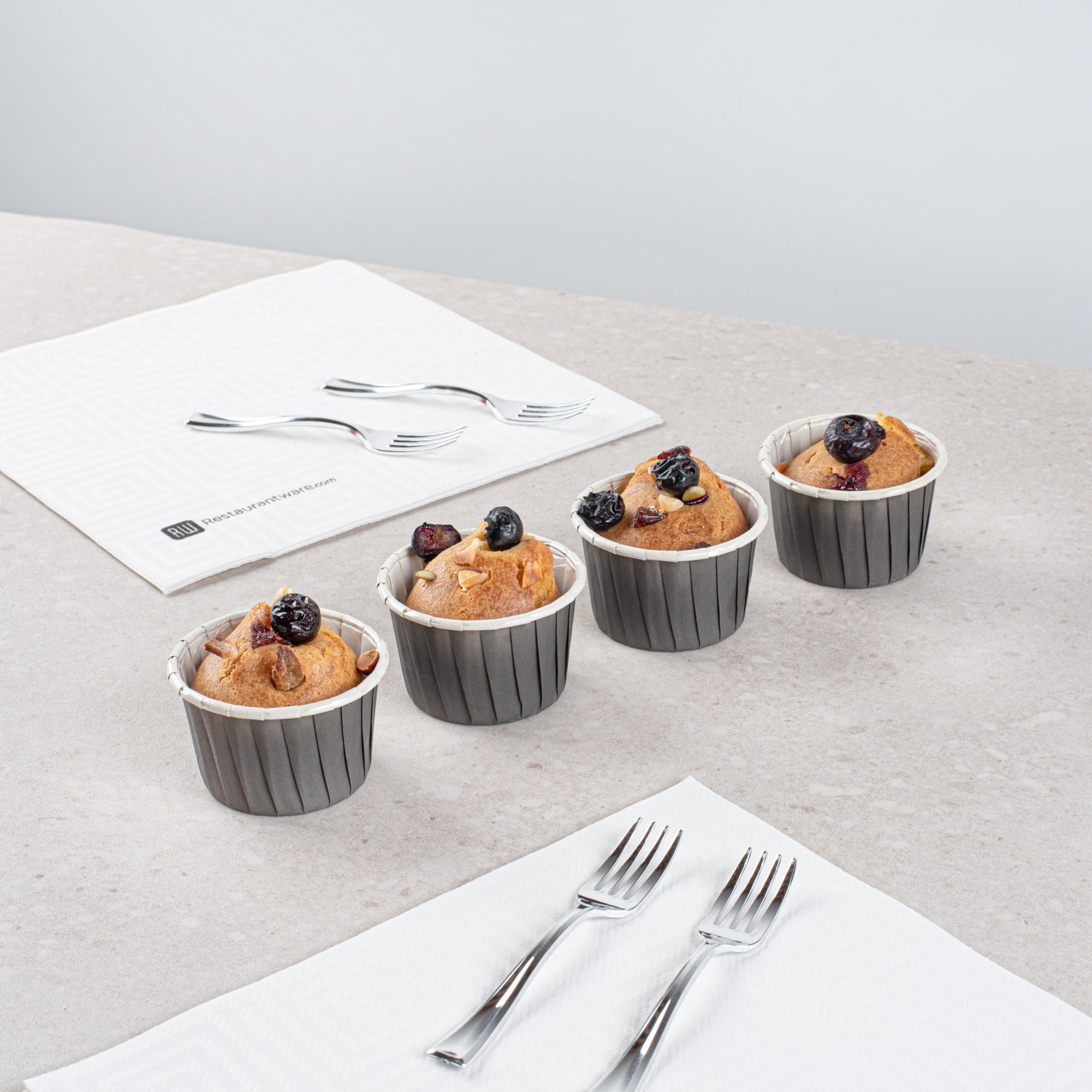 2 OZ ROUND GRAY PAPER MEDIUM BAKING CUP - PLEATED