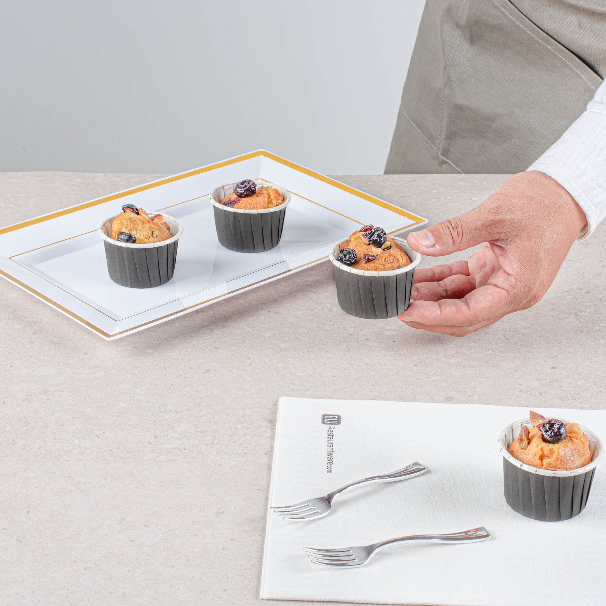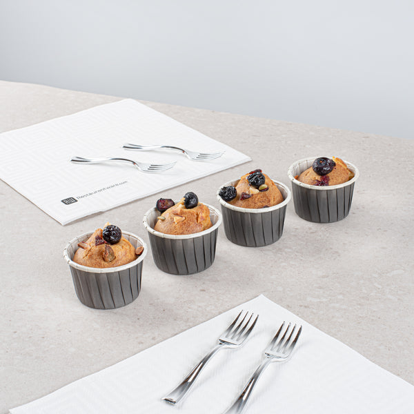 - Pleated design accentuates cookies, cupcakes, and pastries