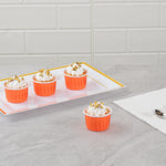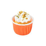 Ensure flawless presentations with grease-free baked treats. Panificio Grease-Resistant Cupcake Liners feature a specialized grease-resistant coating, allowing your cupcakes to release easily without leaving any residue, making them the perfect cupcake liner for your bakery or cafe. Constructed from heavyweight paper, these liners can withstand oven temperatures up to 425 degrees Fahrenheit, ensuring that your creations remain intact even under high heat, making these disposable muffin cups reliable for fast-paced foodservice environments. The pleated design beautifully accentuates cupcakes and muffins, enhancing their visual appeal and attracting customers seeking baked goods. With a vibrant tangerine color, these liners add a pop of color to your display cases, while their 2.25-inch diameter and 1.4-inch height provide the ideal size for standard treats. Elevate your baking operations with these heavy-duty paper baking cups and ensure consistent quality with every batch. Each order includes 200 Panificio Grease-Resistant Cupcake Liners.