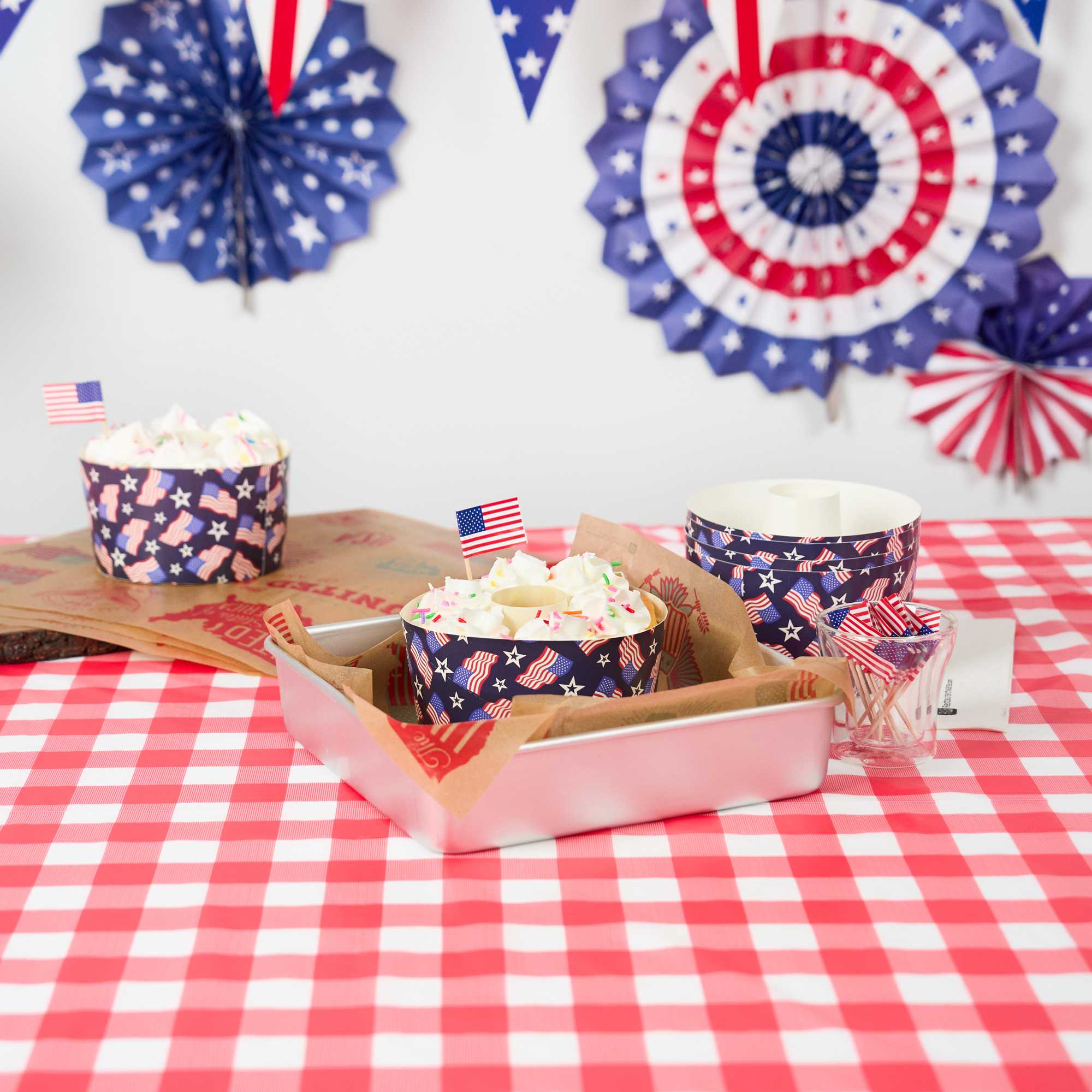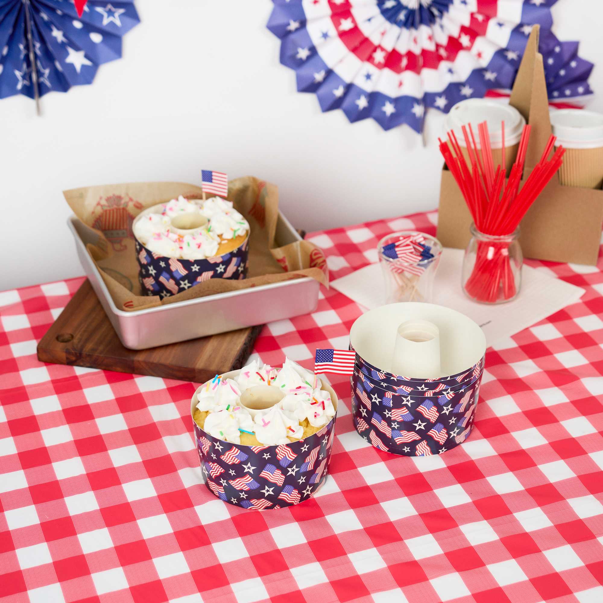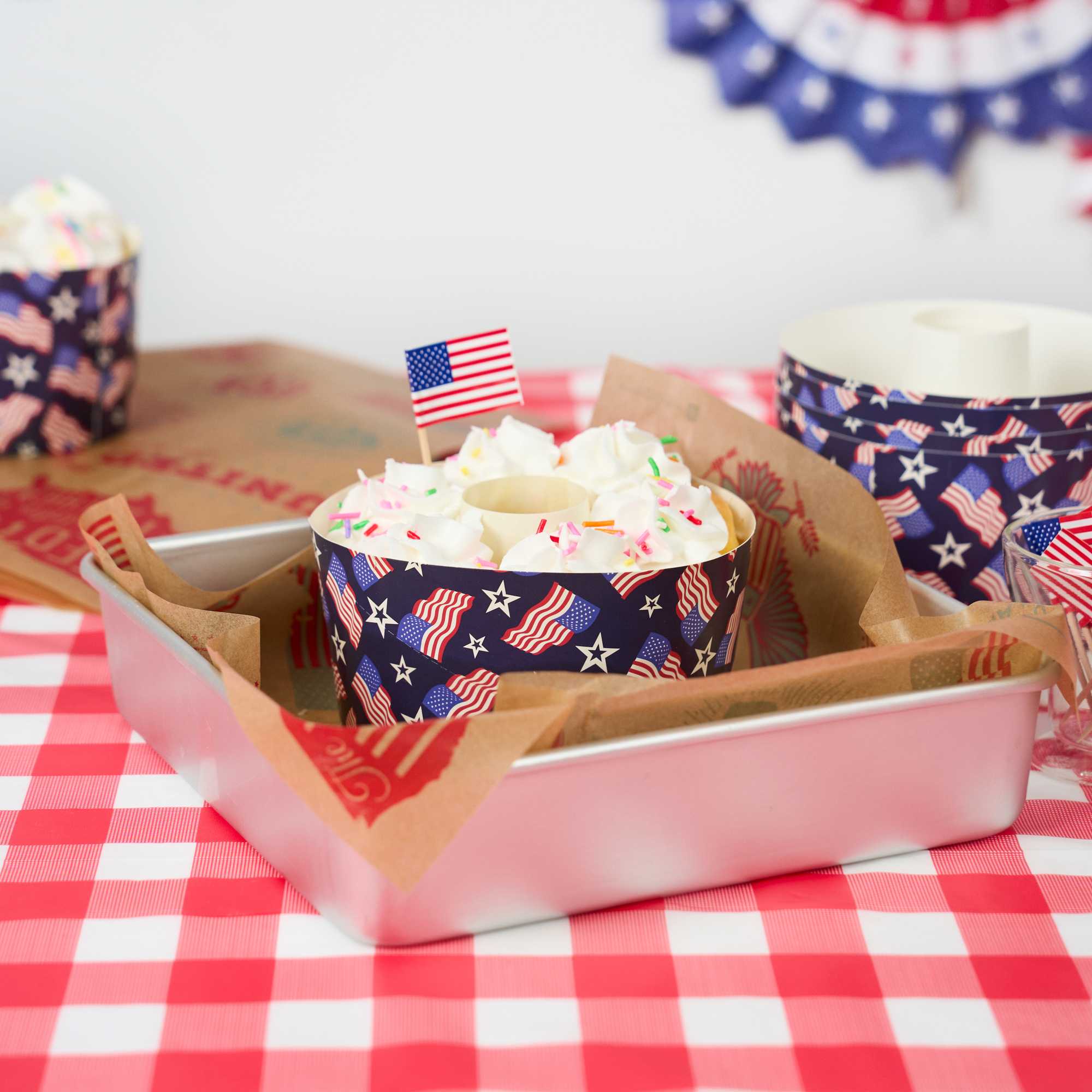 22 OZ PAPER BAKING RING MOLD - AMERICAN FLAG, GREASEPROOF