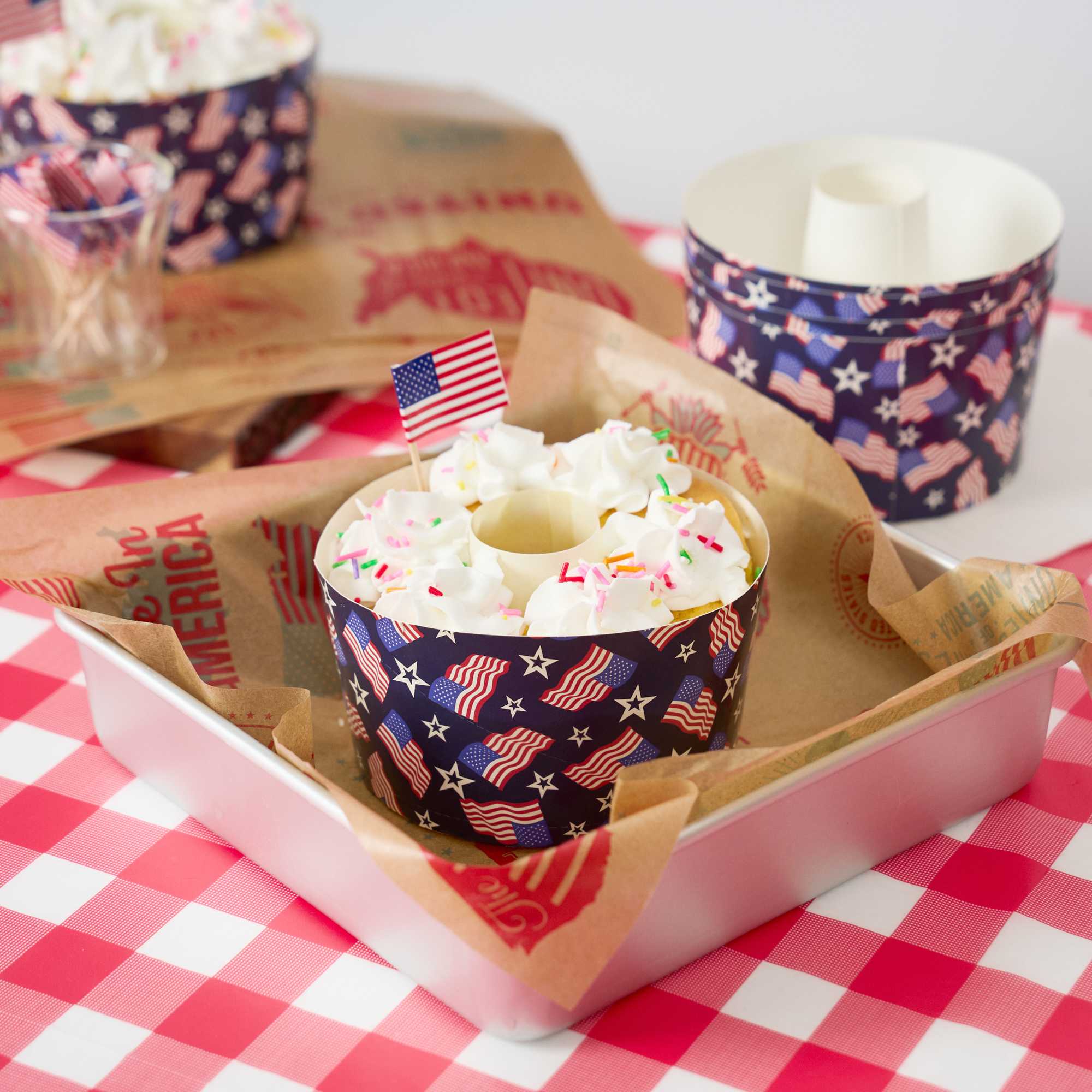 22 OZ PAPER BAKING RING MOLD - AMERICAN FLAG, GREASEPROOF