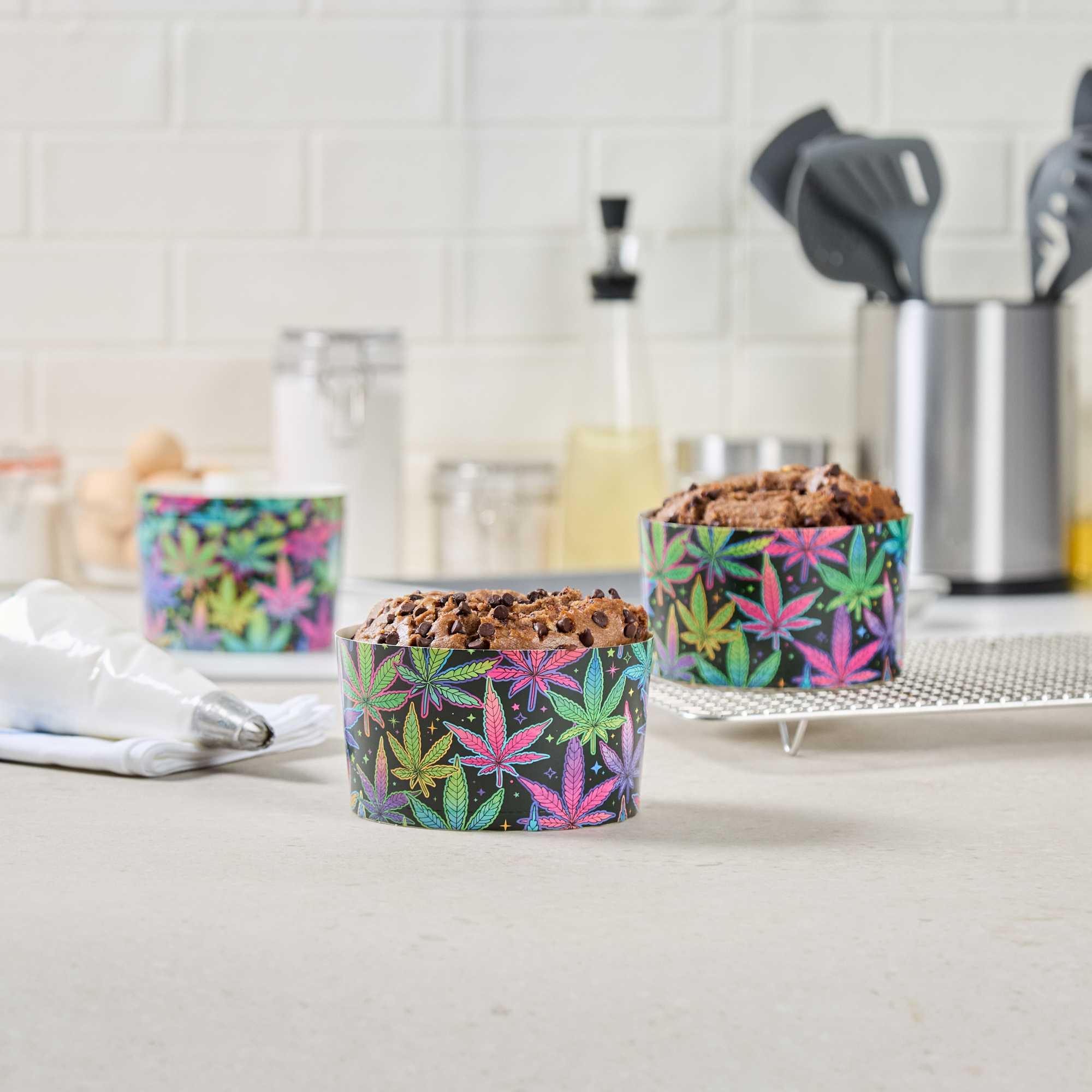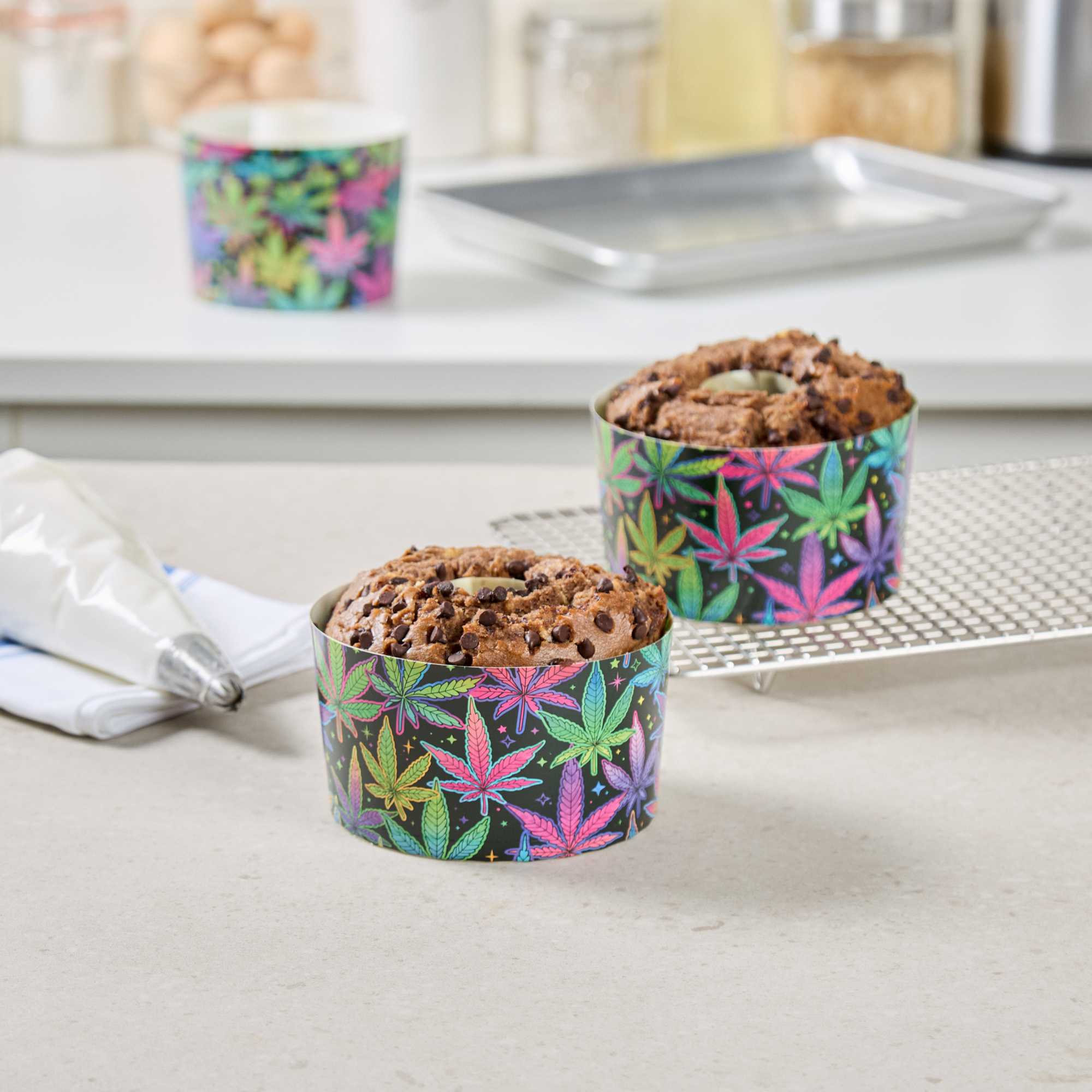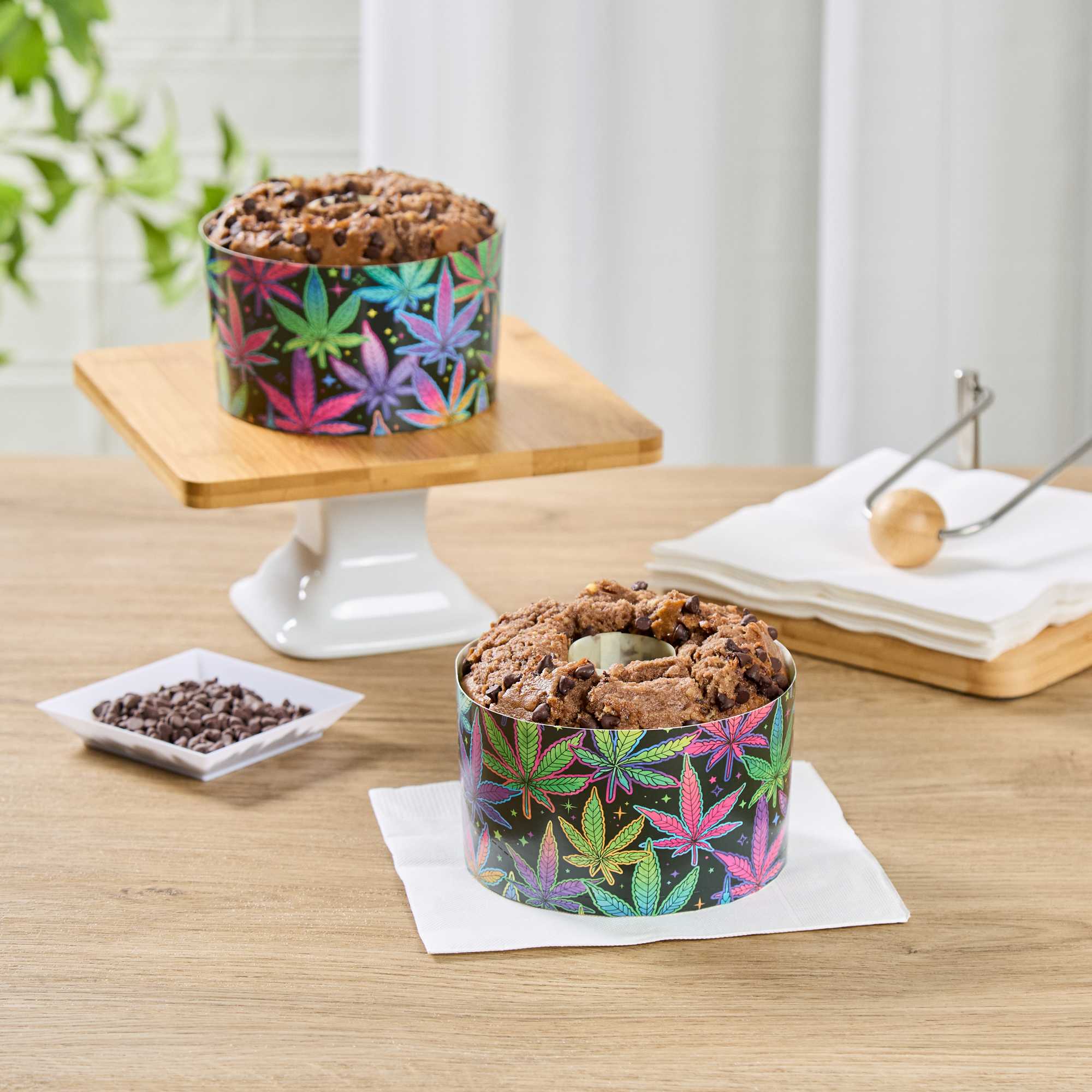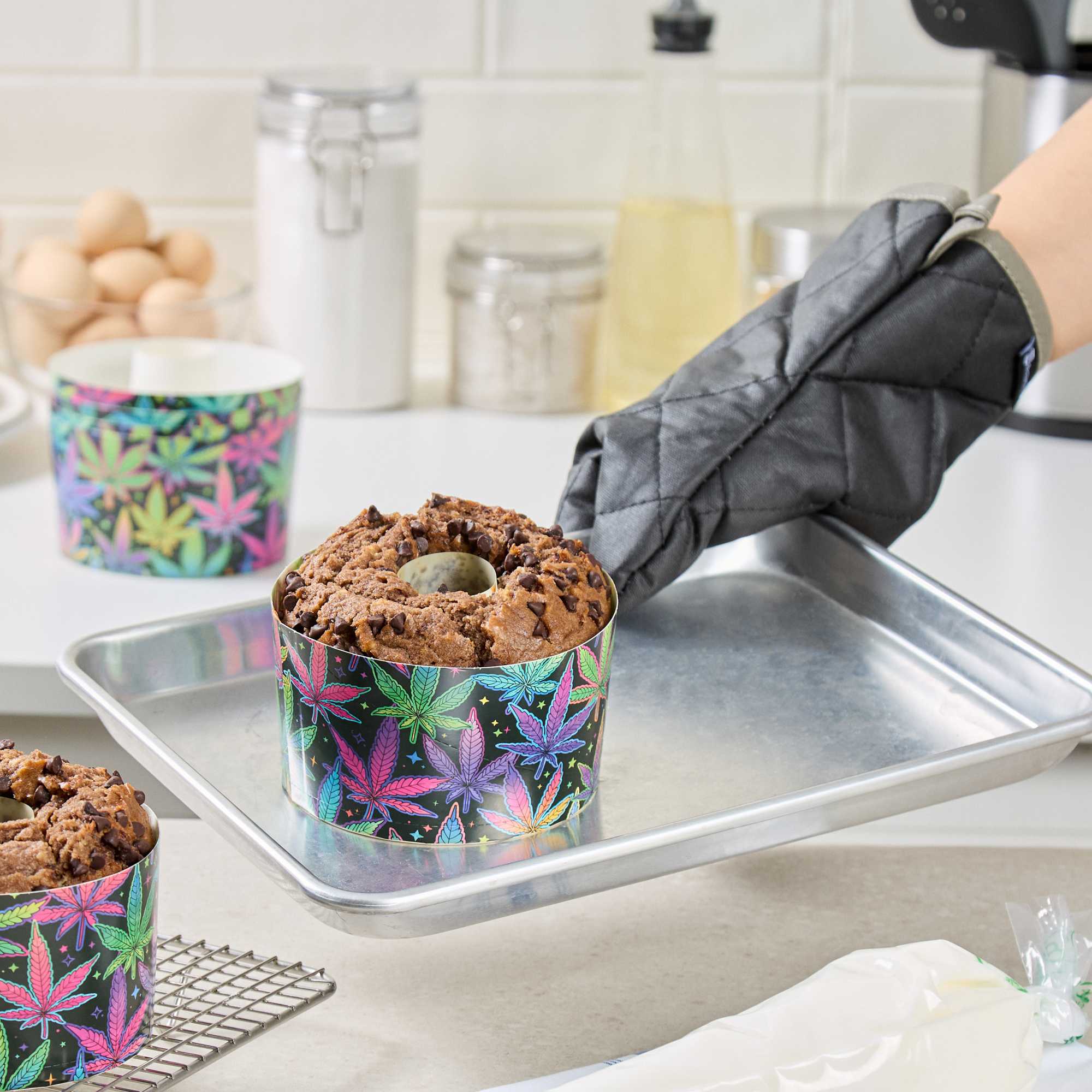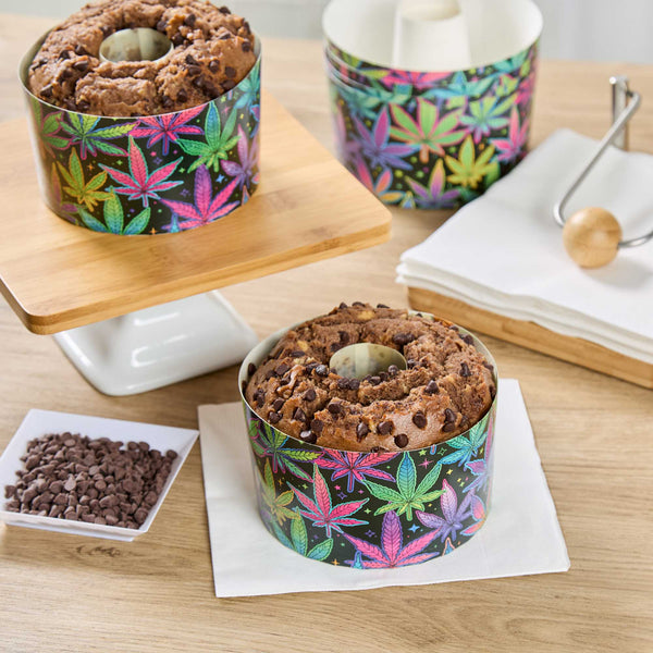 22 OZ PAPER BAKING RING MOLD - TRIPPY LEAF PRINT, GREASEPROOF