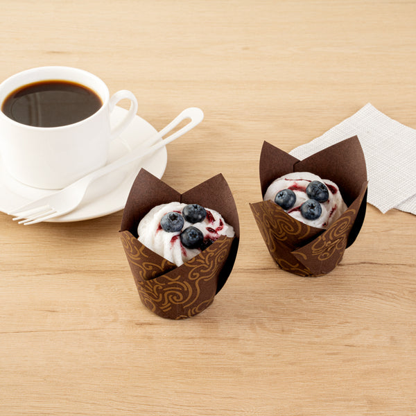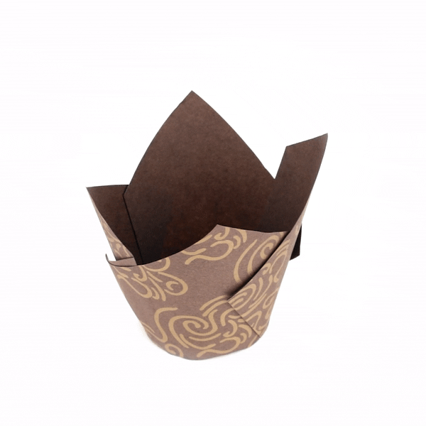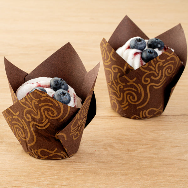 3.5 OZ BROWN PAPER FLORAL TULIP BAKING CUP - GREASEPROOF
