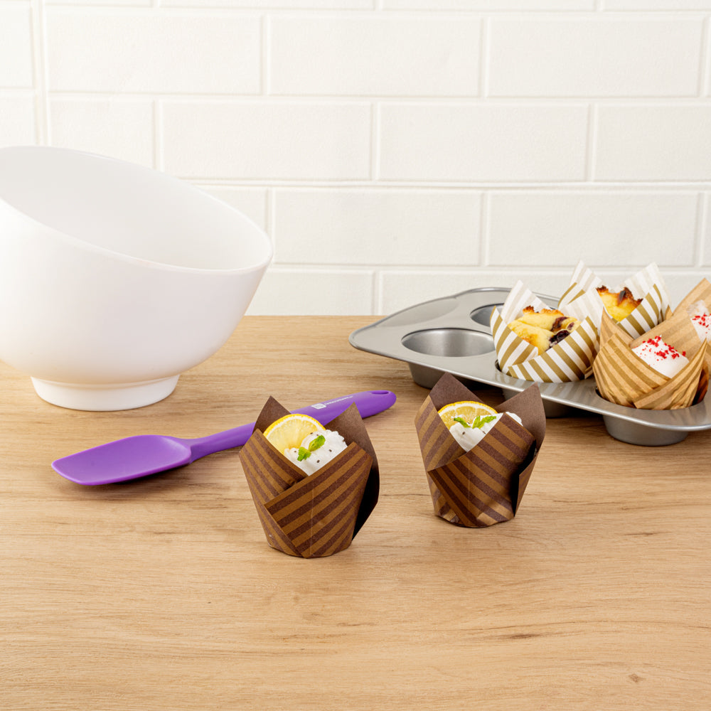 3.5 OZ BROWN PAPER STRIPED TULIP BAKING CUP - GREASEPROOF